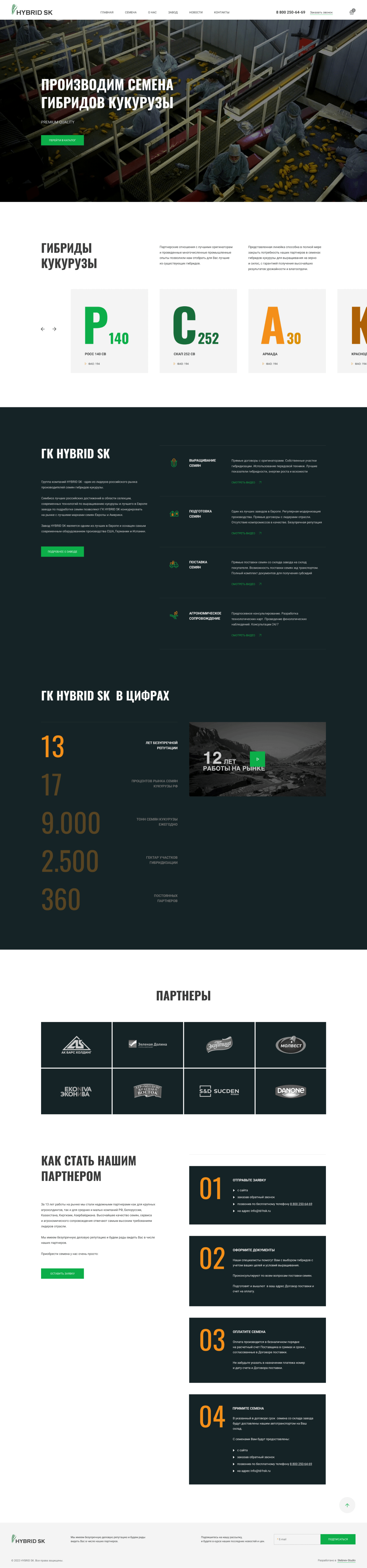 Наша задача: разработать сайт, который познакомит клиентов и партнеров с деятельностью HYBRID SK – от выращивания до калибровки и продажи семян кукурузы.
