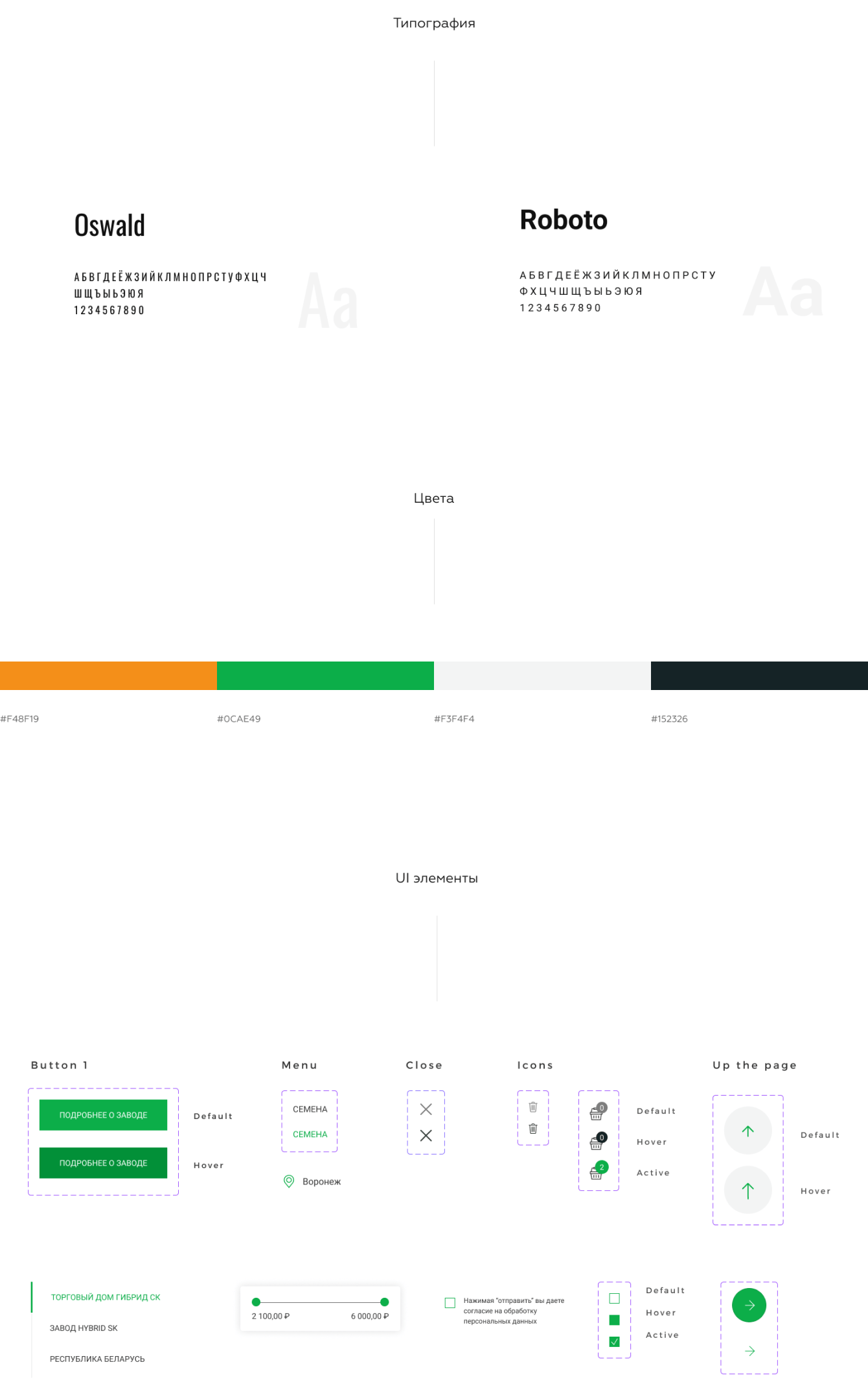 В структуру сайта включили информационные разделы, содержащие общую информацию о группе компаний, новости, сведения о руководстве, информацию о кукурузокалибровочном заводе, а также – полноценный каталог семян кукурузы. Карточки товаров в каталоге выполнили в стиле таблицы химических элементов. Подбор семян упростили за счет фильтров и сортировки. Оформление заказа реализовали в формате «корзины», чтобы пользователи могли добавлять одновременно разные сорта семян.