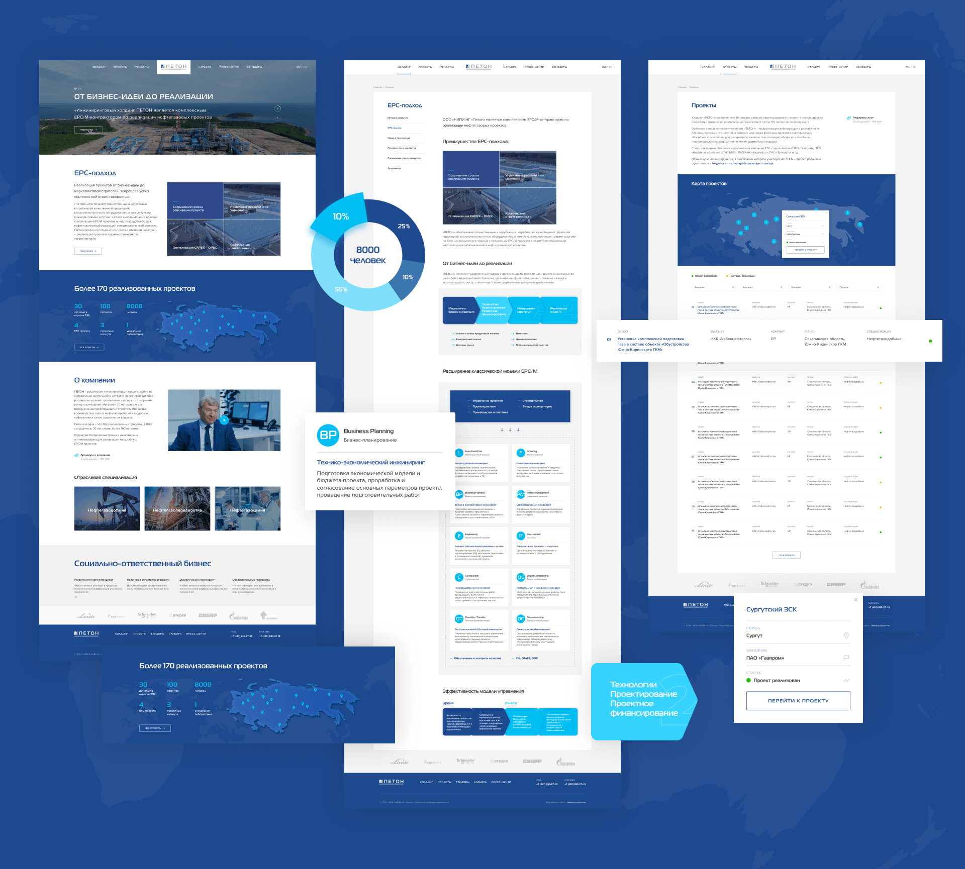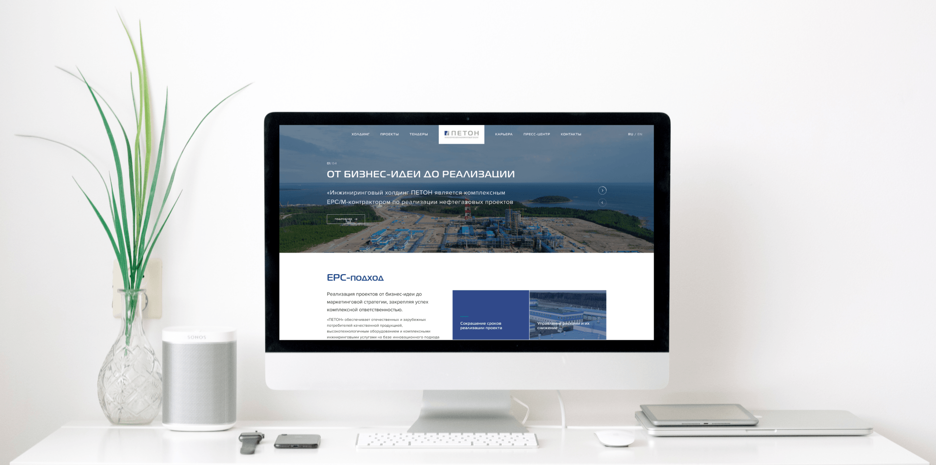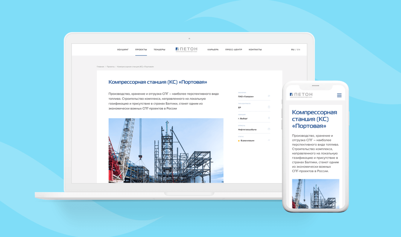 Функциональный корпоративный сайт компании «Петон». Через него пользователи могут подать заявку на тендер, связаться с представителями компании.