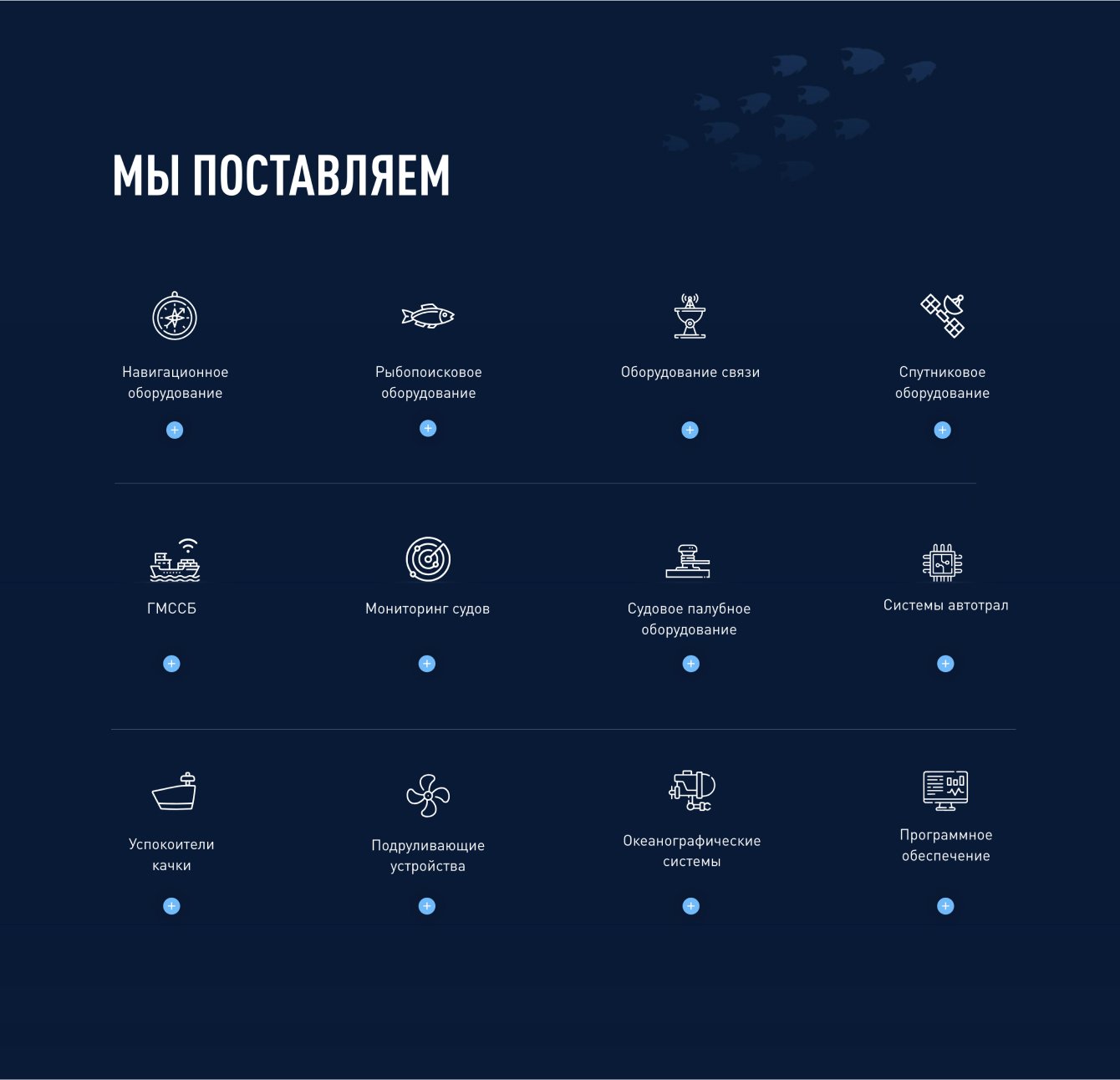 Разработали индивидуальный пак иконок, каждая из которых соответствует направлению поставляемого компанией оборудования