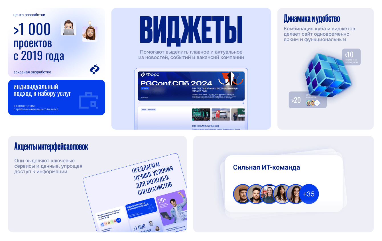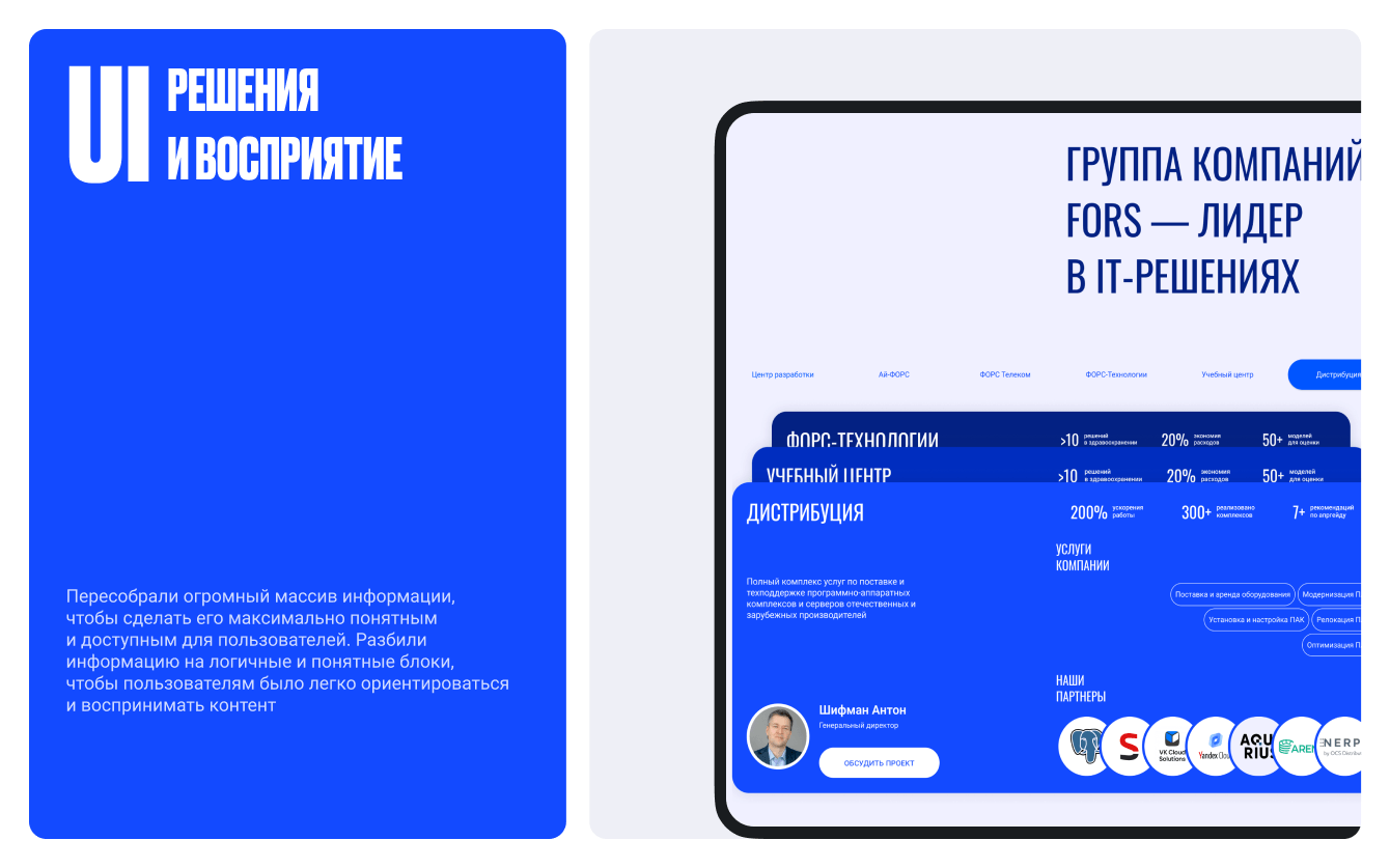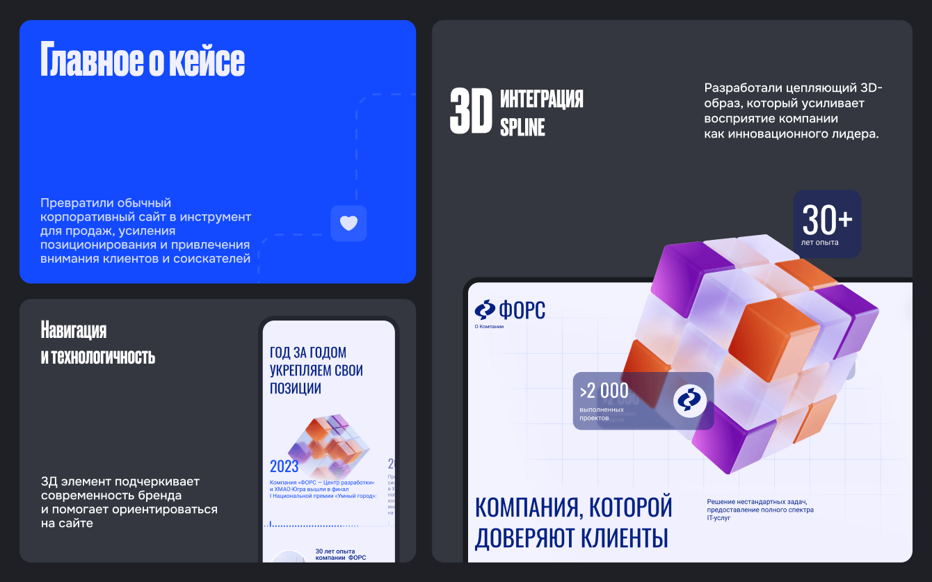 Итог: обновлённый сайт ФОРС стал не просто современным корпоративным ресурсом, а цифровой моделью компании — средой, которая показывает инженерный масштаб и сложность бизнеса через структуру, сценарии и взаимодействие.
