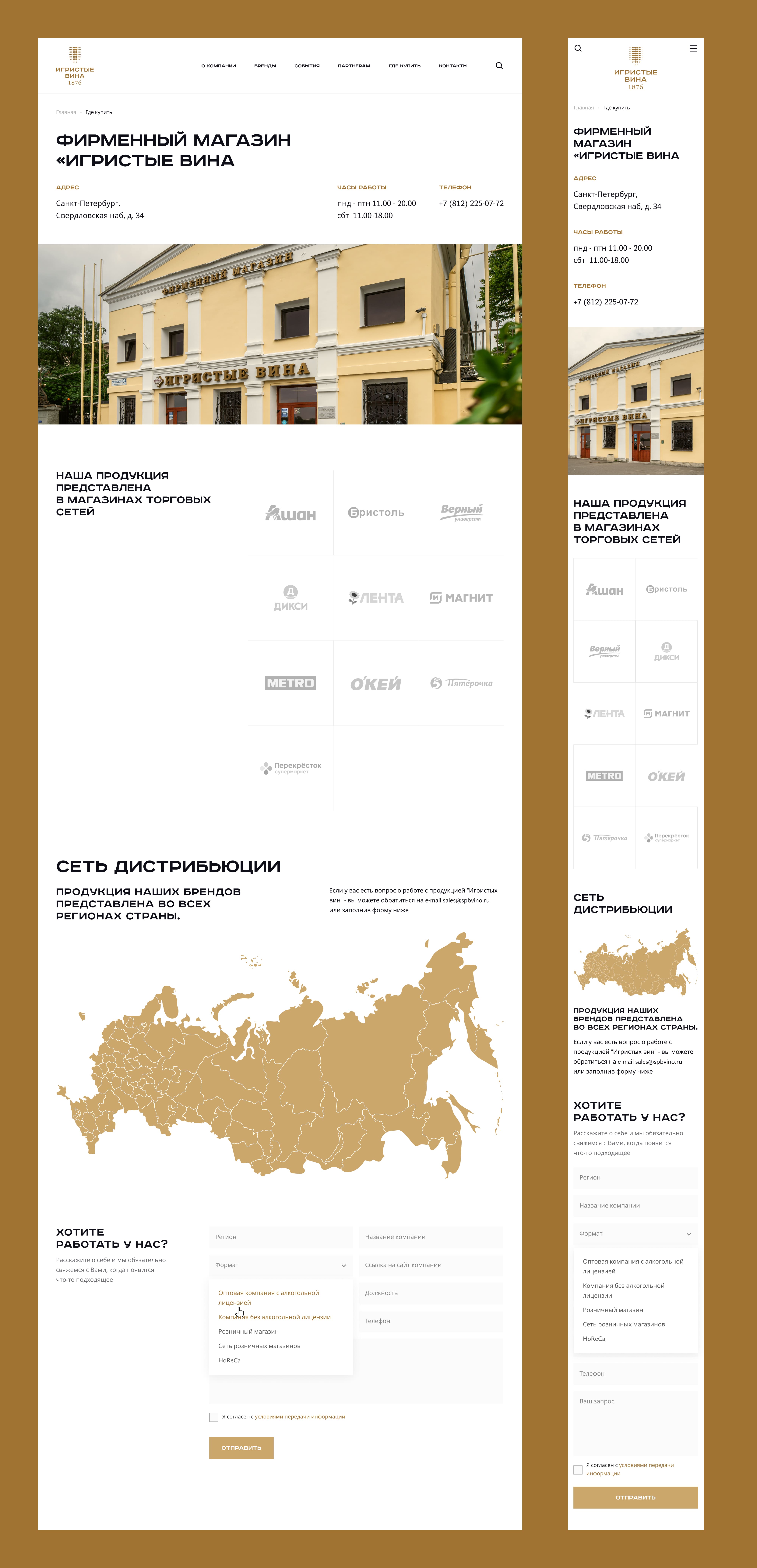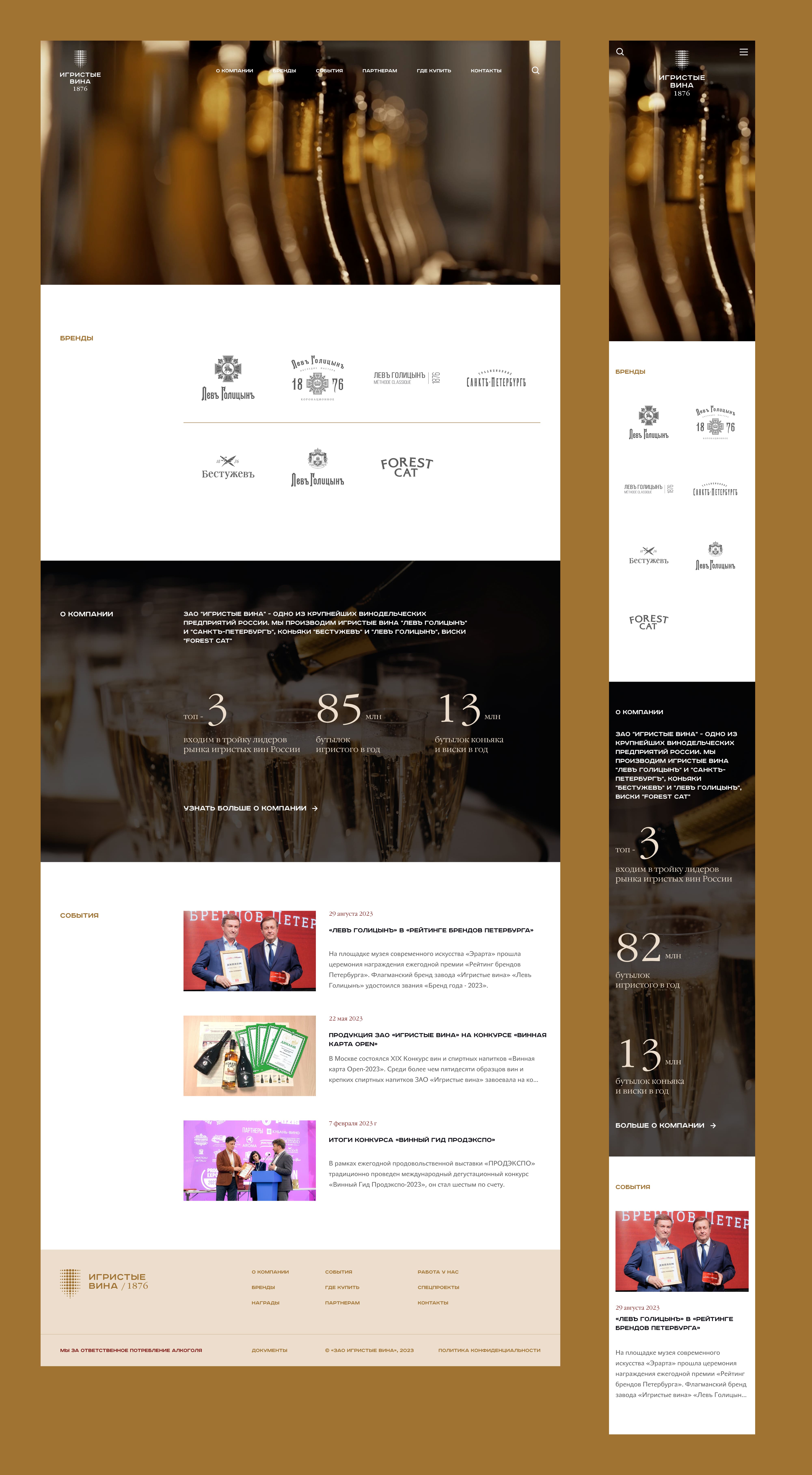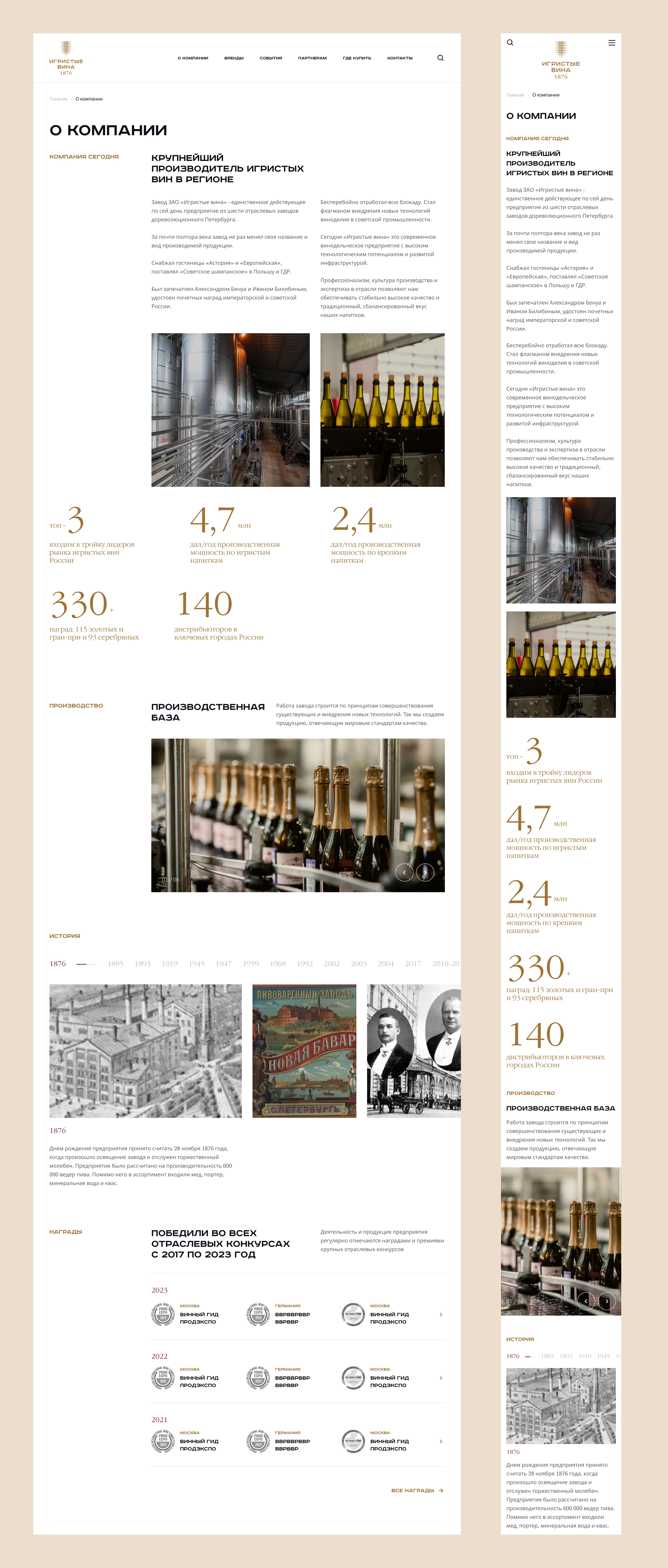 Подготовили разделы: о компании, бренды, награды, события, где купить;