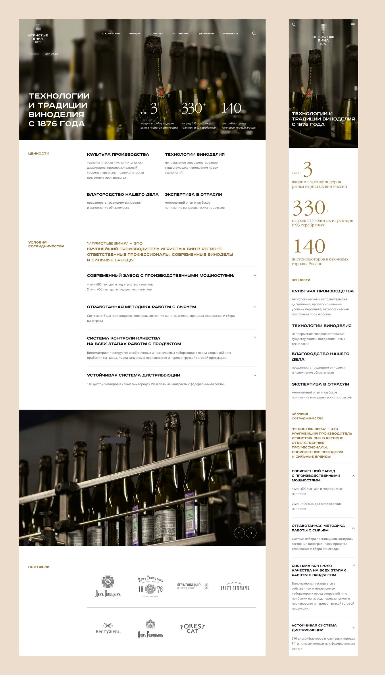 Разработать корпоративный сайт производителя игристых вин, который отражал бы дух компании.