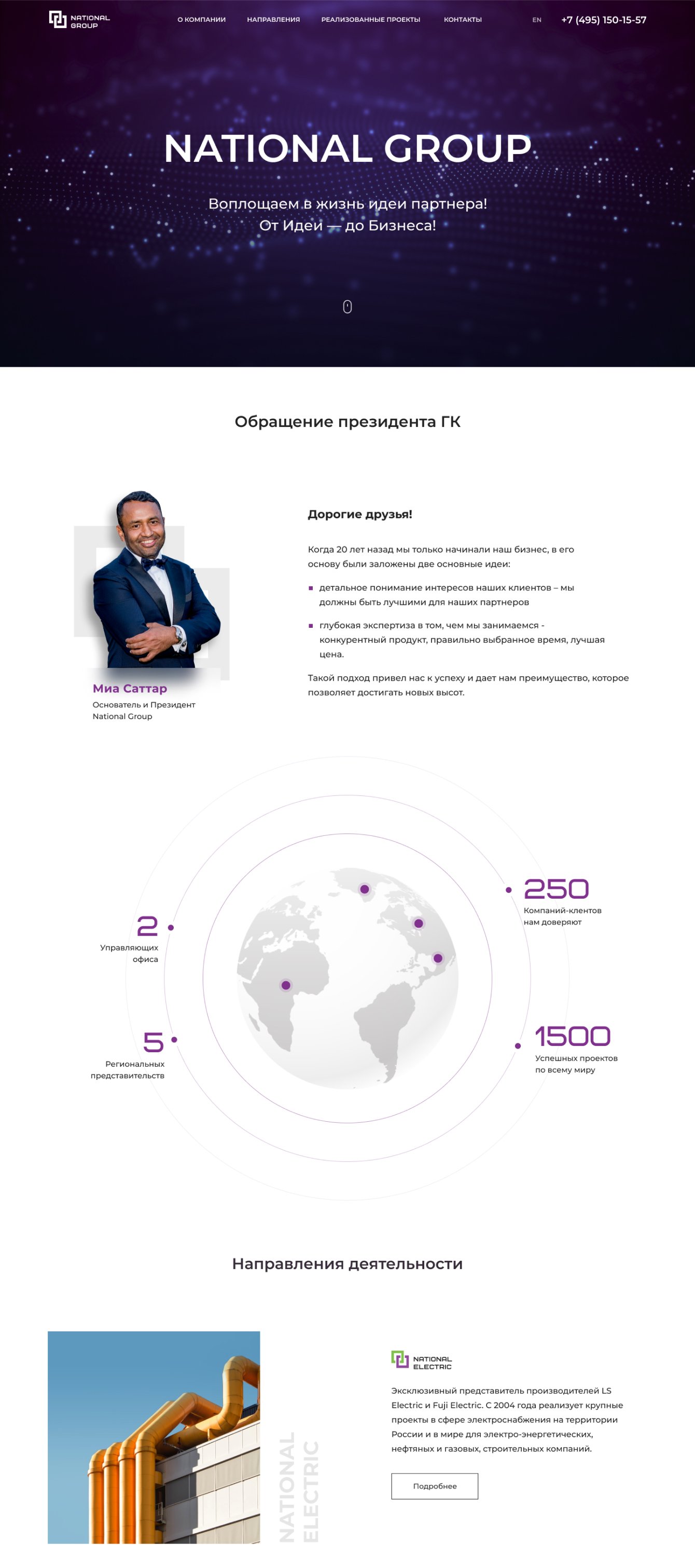От лица Руководства ГК НАЦИОНАЛ ГРУПП искренне хочу выразить свою благодарность компании Kompot за тот подход, который ребята продемонстрировали в период работы над нашим проектом. Нельзя сказать, что у нас было что-то грандиозное или трудное: нам нужно было сделать сайт — визитную карточку группы компаний. Однако и в этом вся сложность — в том, что при минимуме информации (контента) необходимо было сваять визуально воспринимаемую платформу, такую, чтобы посетитель: с одной стороны — четко смог понять, чем занимается группа компаний, с другой — это должно быть еще и красиво, современно и нескучно.