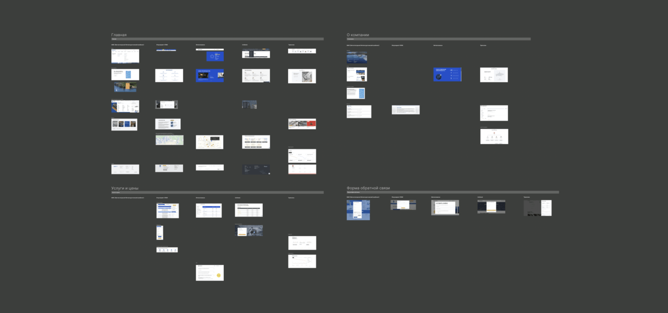 Начали с серии бизнес-интервью с представителями заказчика из разных отделов. Говорили об их внутренних процессах, зафиксировали цели и задачи нового сайта.