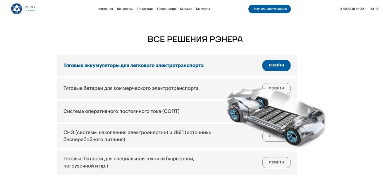 ООО «РЭНЕРА» — отраслевой интегратор Росатома в области систем накопления электроэнергии.