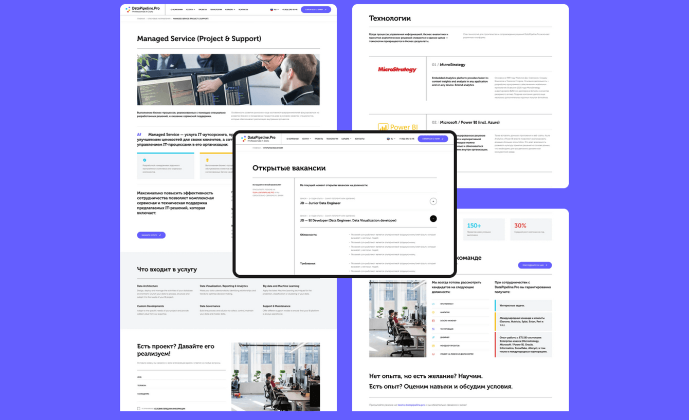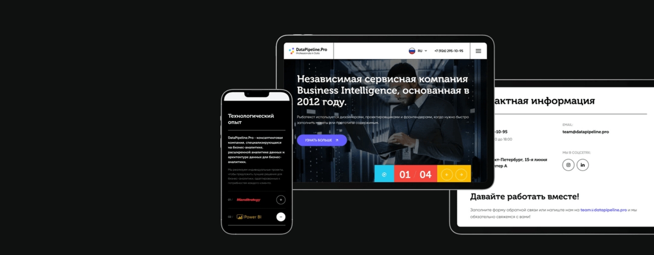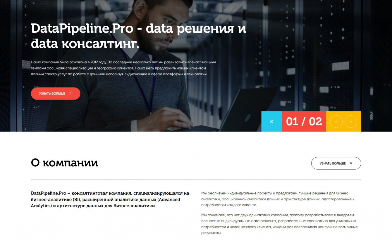 Необходимо создать веб-ресурс для консалтинговой компании с комплексной сферой деятельности (бизнес-аналитика, расширенная аналитика данных, архитектура данных для бизнес-аналитики). Новый корпоративный сайт должен был продемонстрировать преимущества организации, ее выгоды в сравнении с конкурентами, а также обеспечивать эргономичную коммуникацию с клиентами.