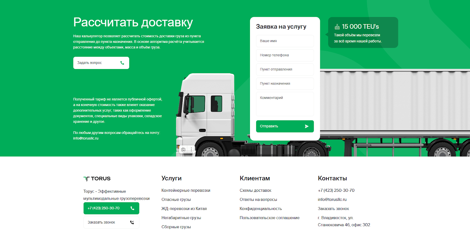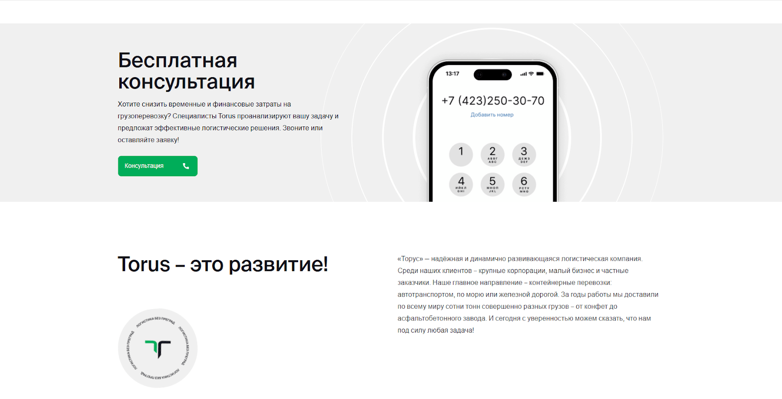 Мы рады, что наша работа помогла компании "Торус" создать эффективный веб-сайт, который соответствует высоким требованиям современного логистического бизнеса и способствует достижению амбициозных целей.