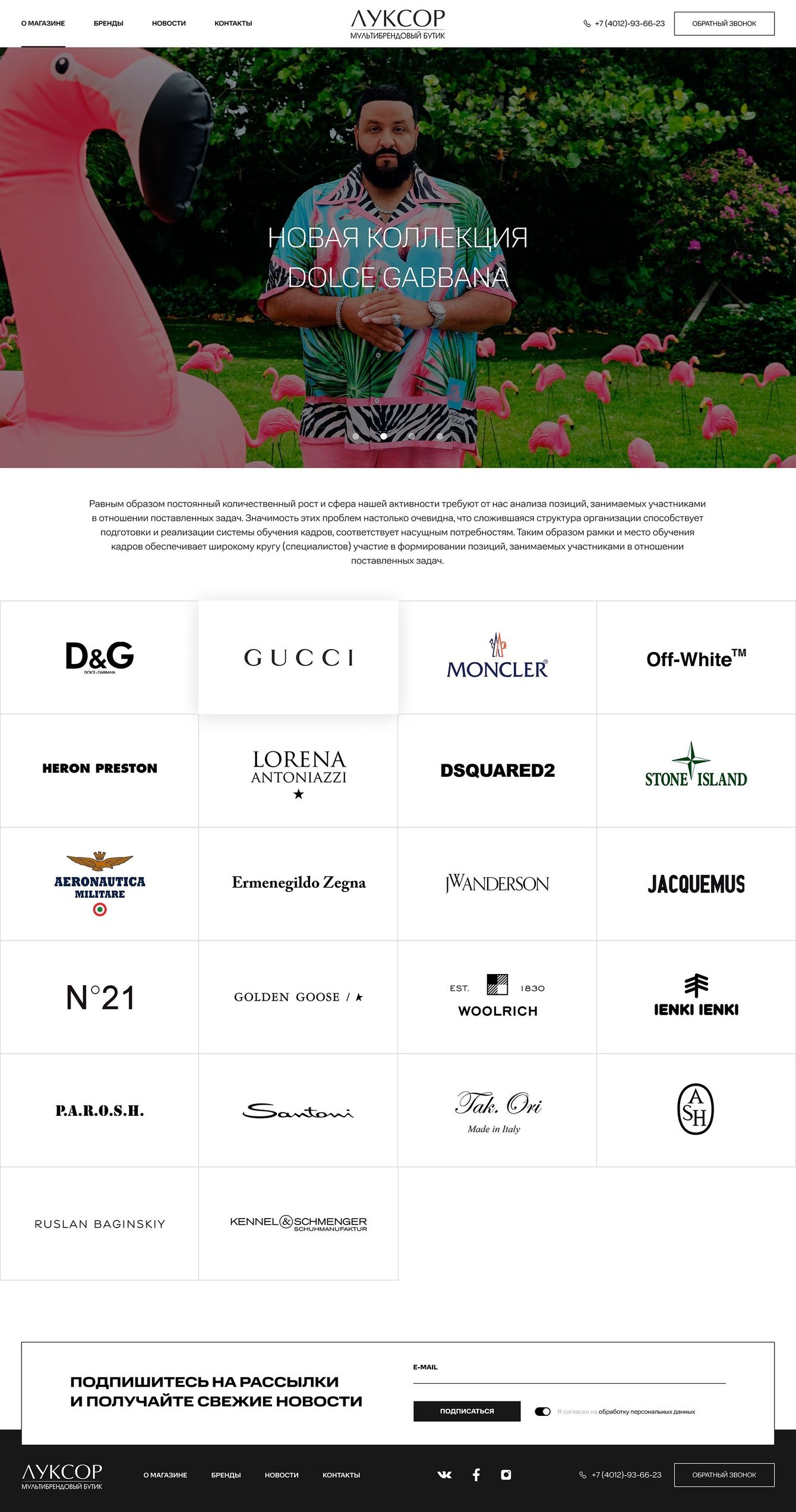 Корпоративный сайт для мультибрендового бутика «Луксор»