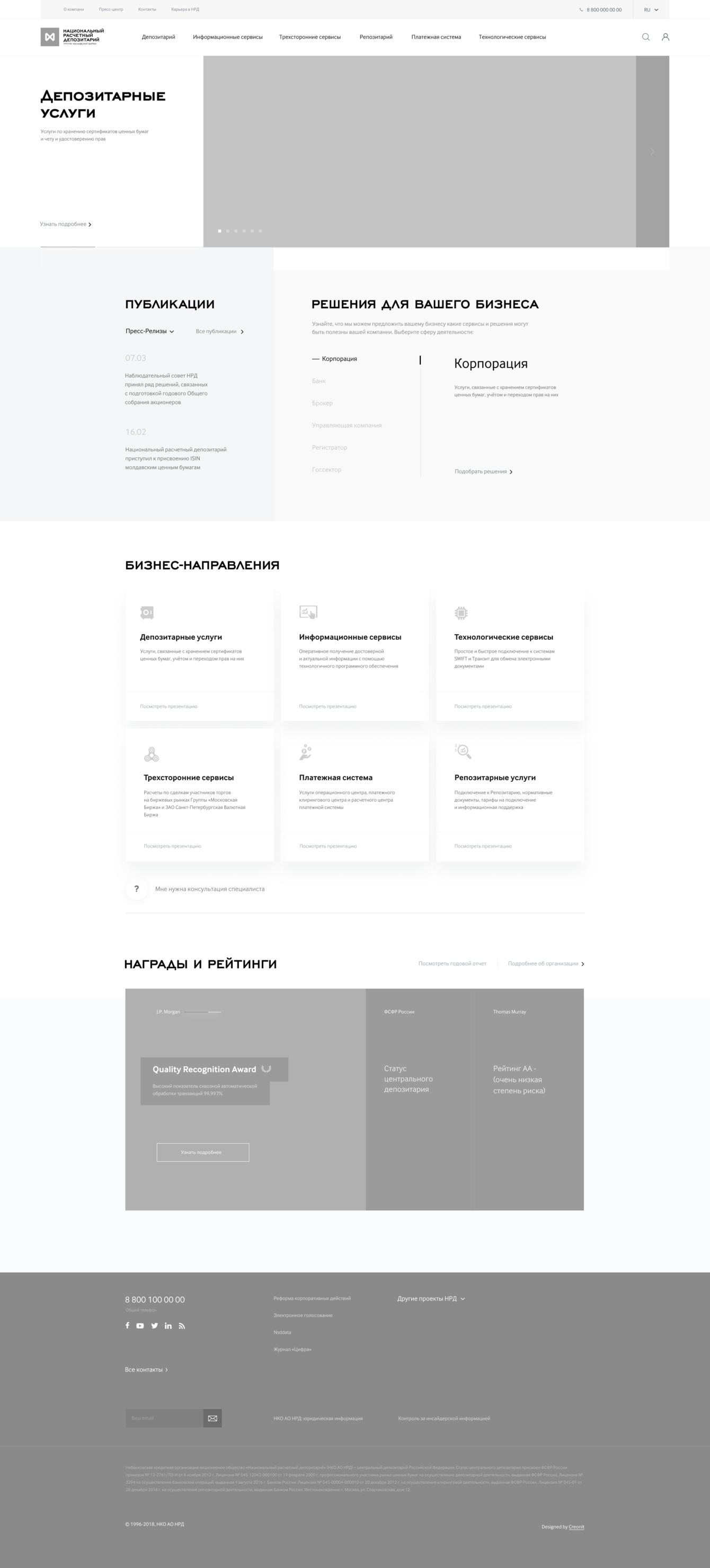 Бизнес-направления НРД — это отдельные подразделения, у каждого из которых есть свои задачи, набор услуг, руководители. Необходимо было создать понятную и четкую структуру услуг, разделить бизнес-направления и акцентировать на них внимание посетителей.