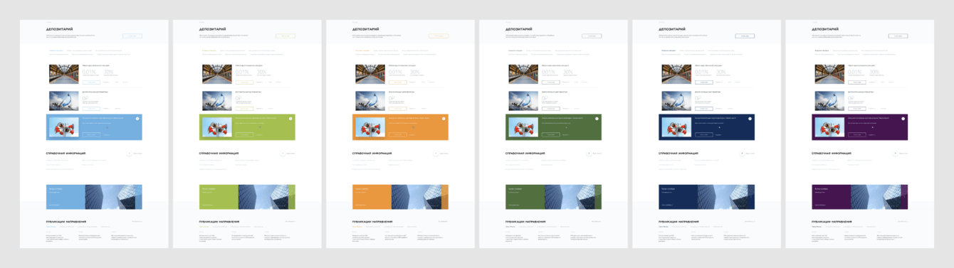 Чтобы облегчить навигацию и дифференцировать бизнес-направления, реализовали для них цветовую разметку.