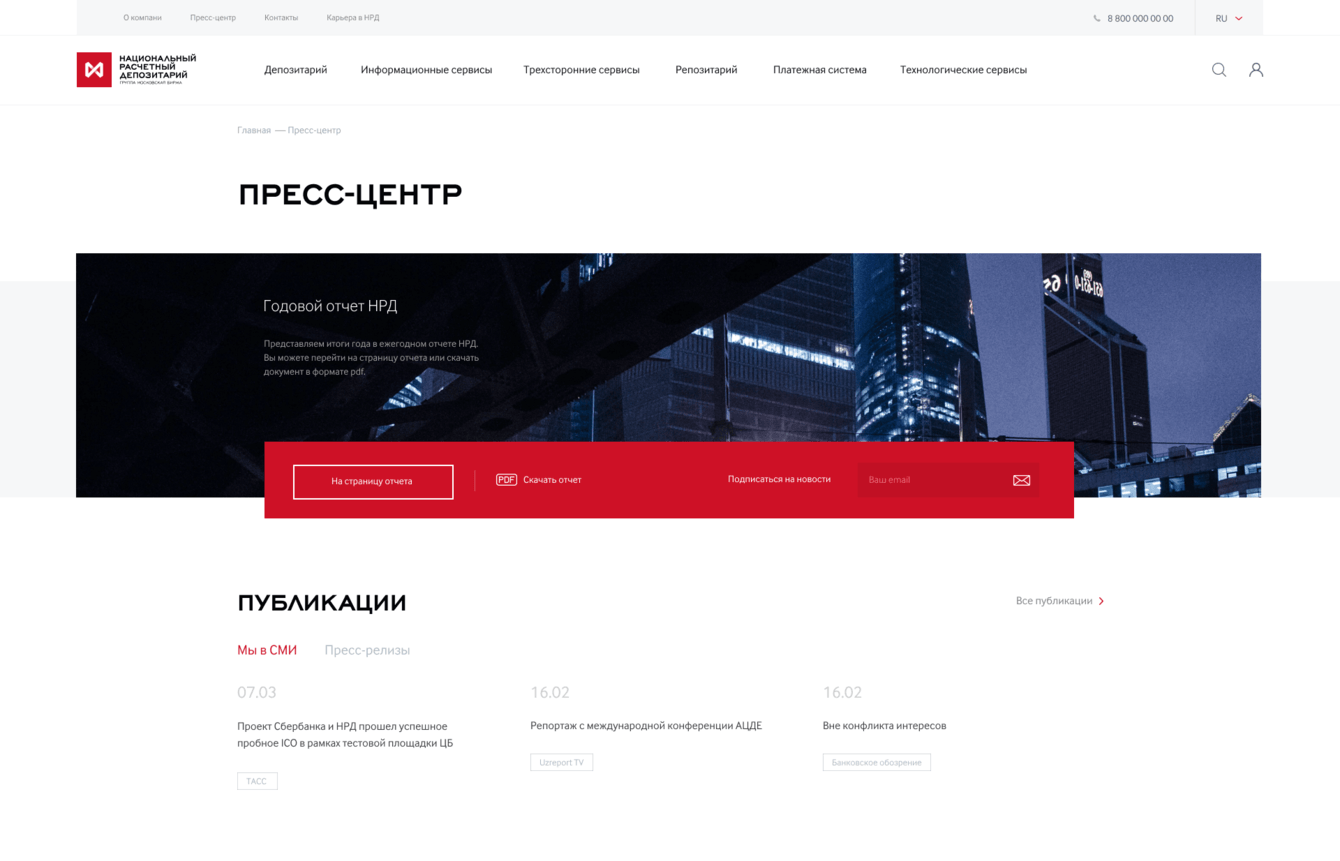 Мы разработали и запустили сайт НРД. Проект прошел несколько этапов внутренней демонстрации существующим клиентам — сайт открывался поэтапно для групп клиентов, они давали обратную связь, по итогам которой проект дорабатывался.