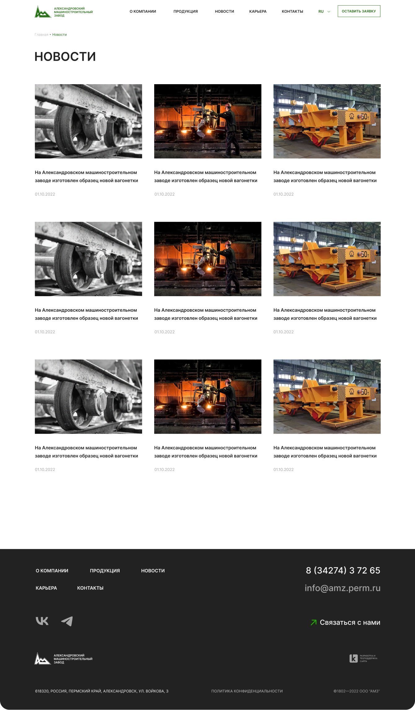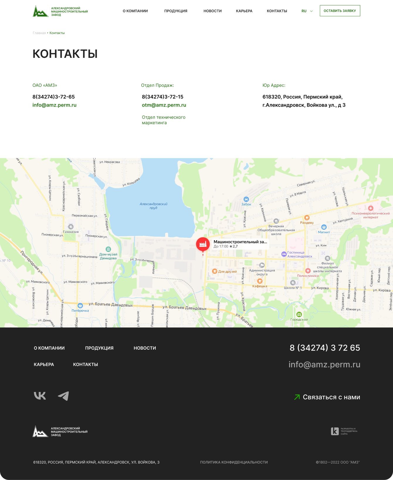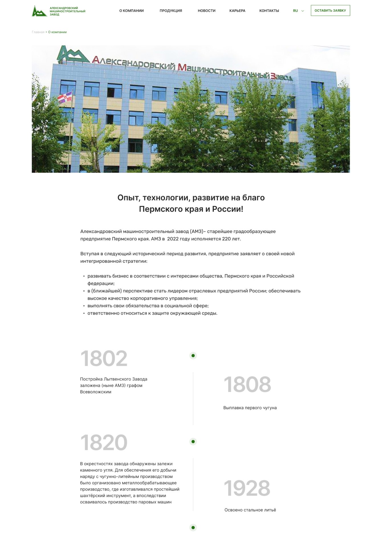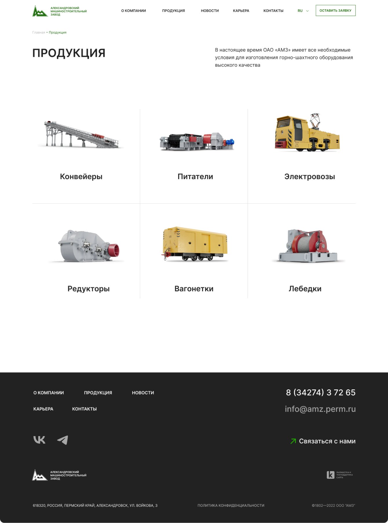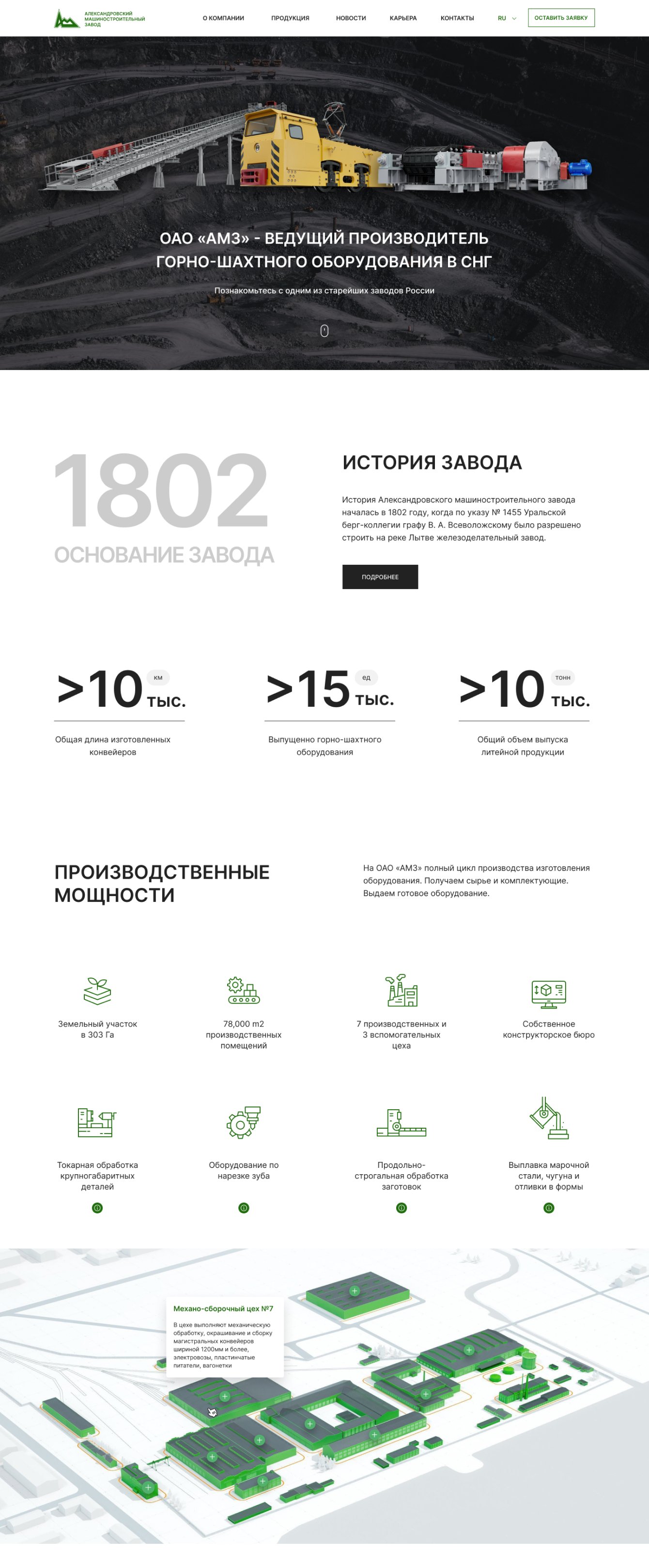 - Разработали новый сайт завода «АМЗ», который является эффективным презентационным и маркетинговым инструментом.