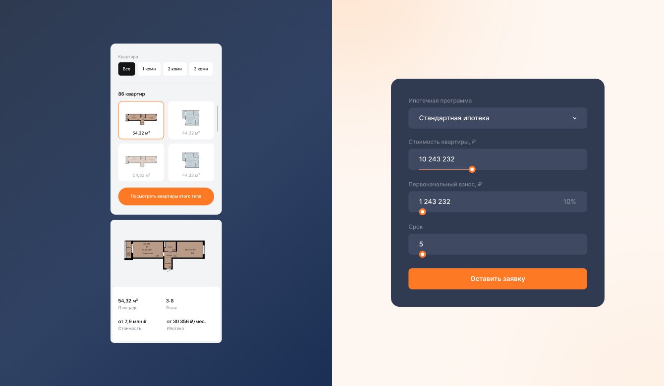 - спроектировали удобную структуру сайта, внедрили расчет ипотеки и интеграцию с CRM;