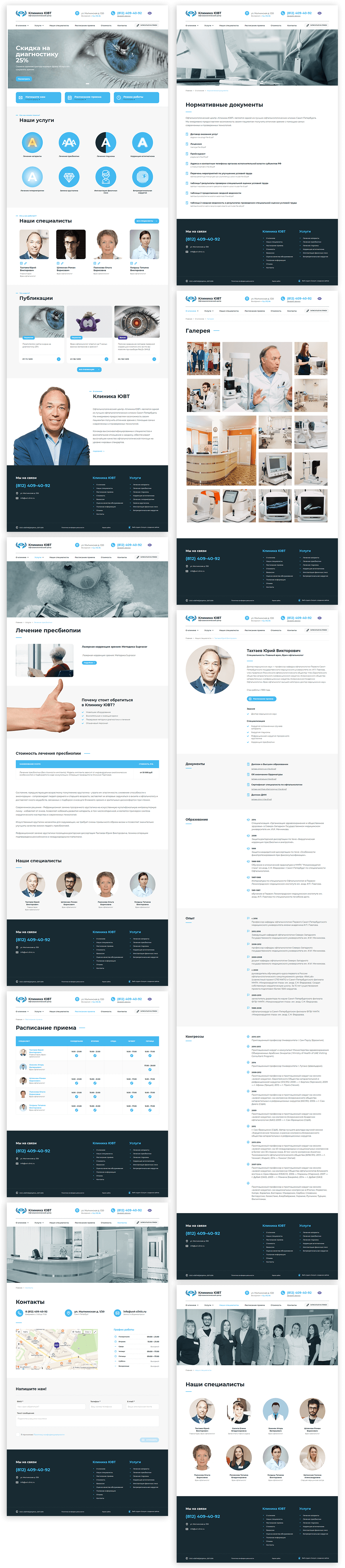 Успешность медицинского учреждения во многом зависит от профессионализма и квалификации врачей, которые в нем работают. Лицо бренда «ЮВТ-Клиники» – главврач и основатель центра Юрий Викторович Тахтаев, врач-офтальмолог высшей категории, доктор медицинских наук, обладатель множества регалий. Создавая новый сайт, мы уделили много внимания его персоне. Не забыв, впрочем, и о других специалистах: у каждого врача клиники есть своя страничка на сайте.
