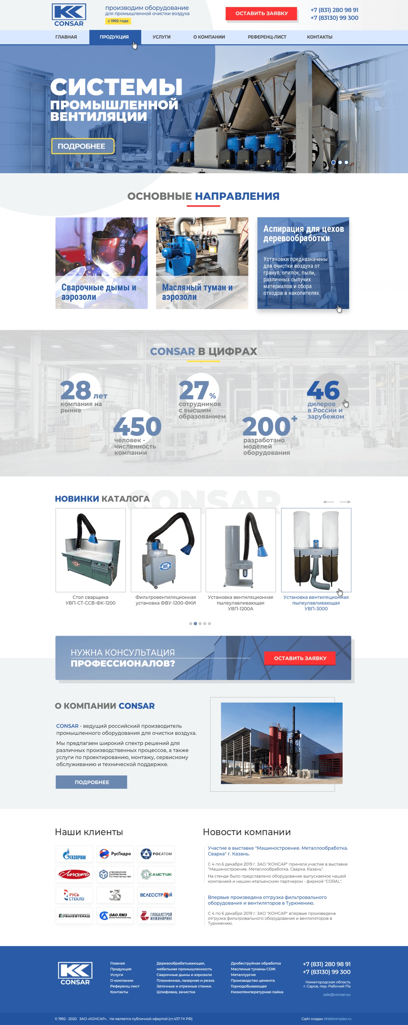 Разработали корпоративный сайт с современным дизайном для завода «КОНСАР» — одного из ведущих производителей оборудования для промышленной очистки воздуха в России.