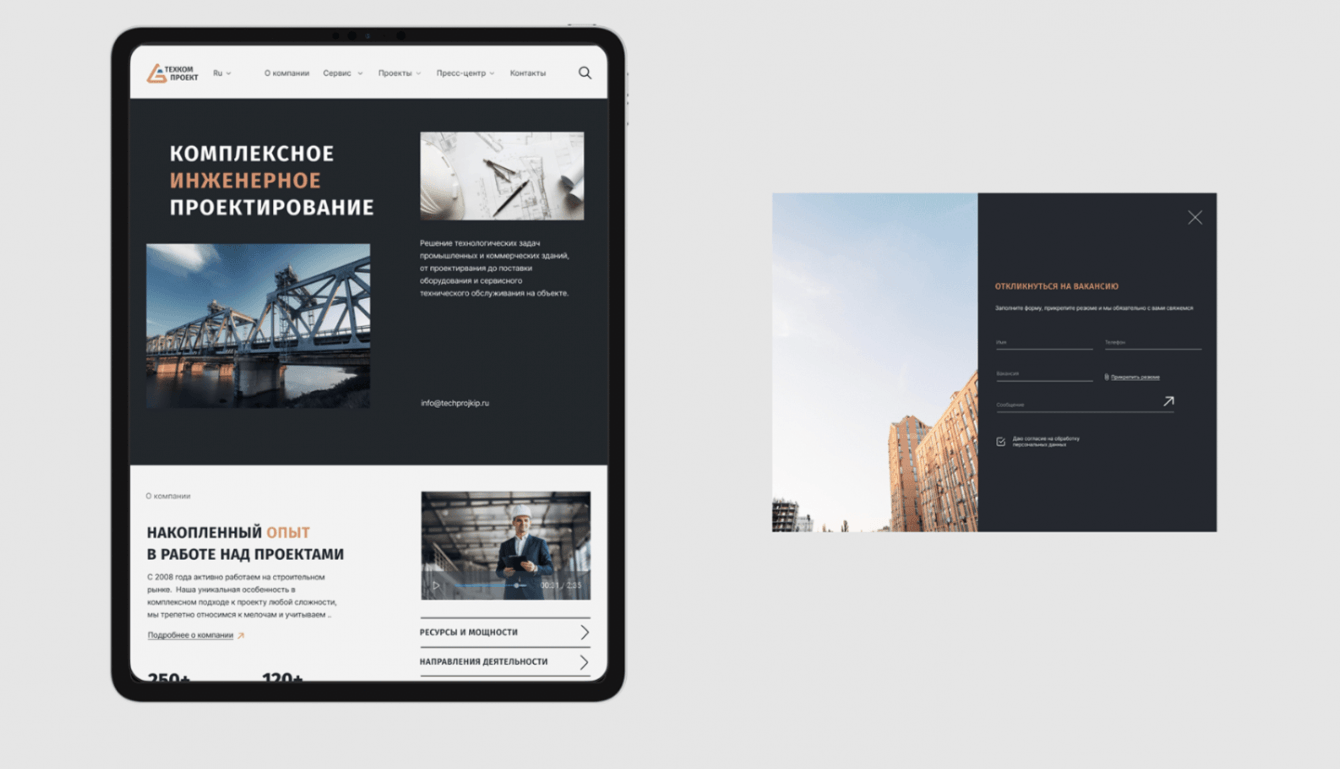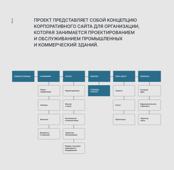 Проект корпоративного сайта компании в сфере строительства. Идея – сделать современно, стильно, имиджево, чтобы пользователь знакомился с компанией, получал о ней всю необходимую информацию в доступной форме.
