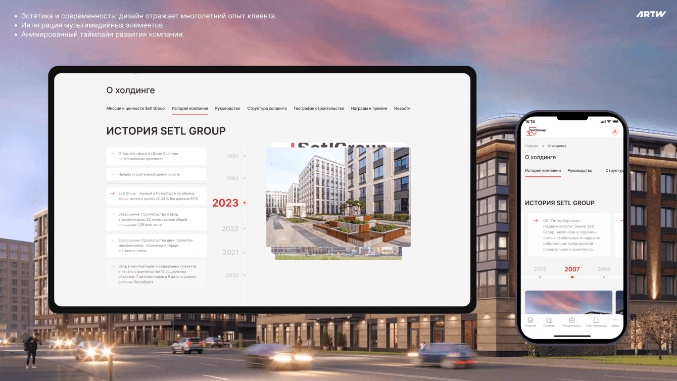 Компания ARTW разработала для Setl Group современный и функциональный портал, отвечающий их требованиям к цифровой трансформации. Мы создали платформу, которая улучшает взаимодействие с клиентами, партнёрами и инвесторами. Благодаря инновационному дизайну, мультимедийным элементам и оптимизации пользовательского опыта Setl Group укрепила свои рыночные позиции и повысила качество сервиса.