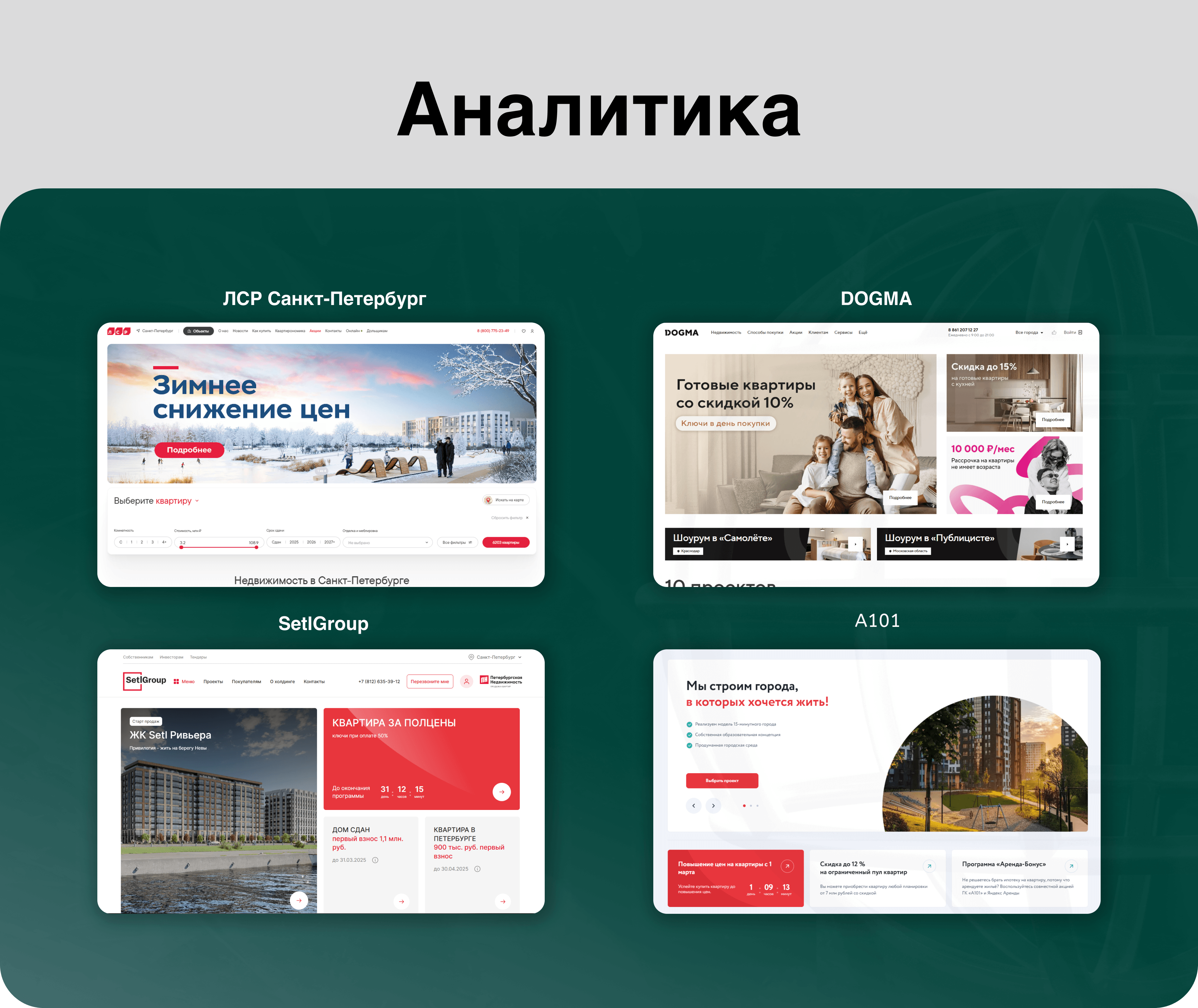 - Косвенные конкуренты: агентства недвижимости, сайты жилых комплексов и девелоперов из других регионов.
