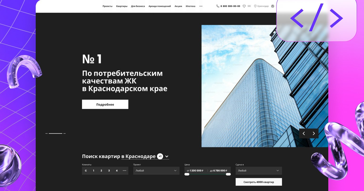Мы были приглашены субподрядчиком для реализации проекта цифровизации экосистемы крупнейшего застройщика России в качестве основной команды разработки. Предстояло создать с нуля корпоративный сайт, который не только отражает все новости и возможности компании, но и даёт возможность размещать реализованные проекты для продажи, создавая максимально удобное пространство для клиентов.