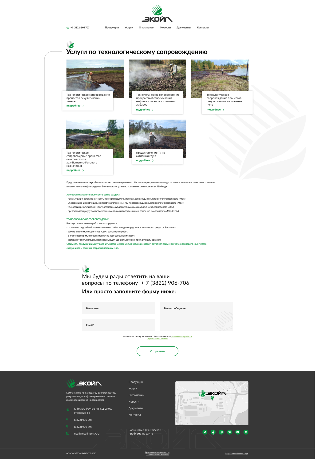 Создать профессиональный и содержательный онлайн-ресурс, отражающий специфику деятельности компании: производство биопрепаратов для очистки и рекультивации, технологическое сопровождение экологических проектов, предоставление полной документации и актуальных новостей.