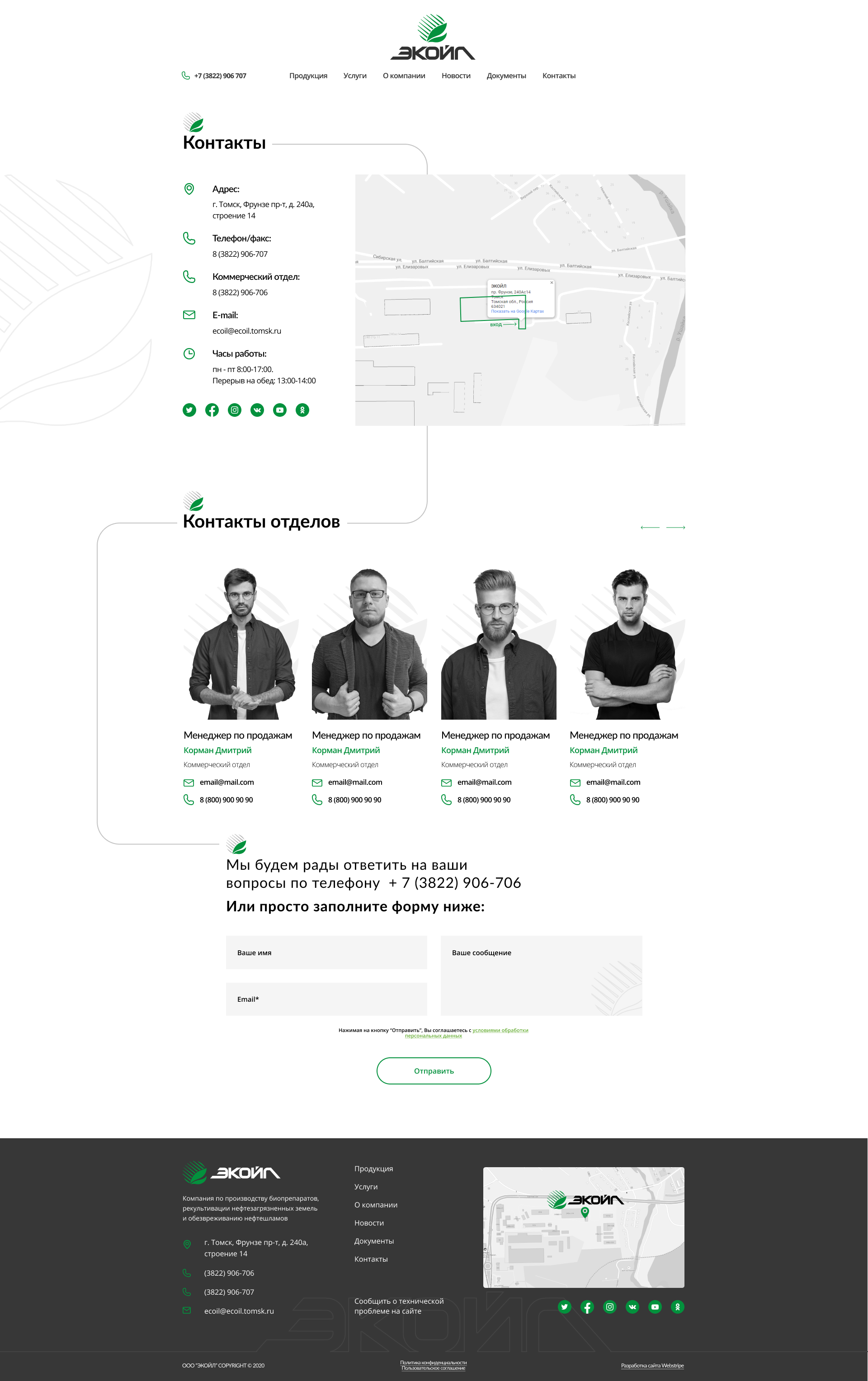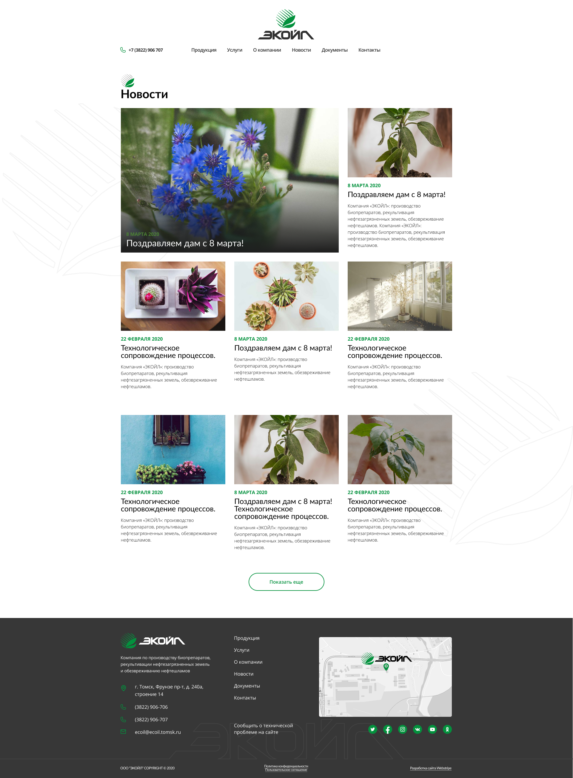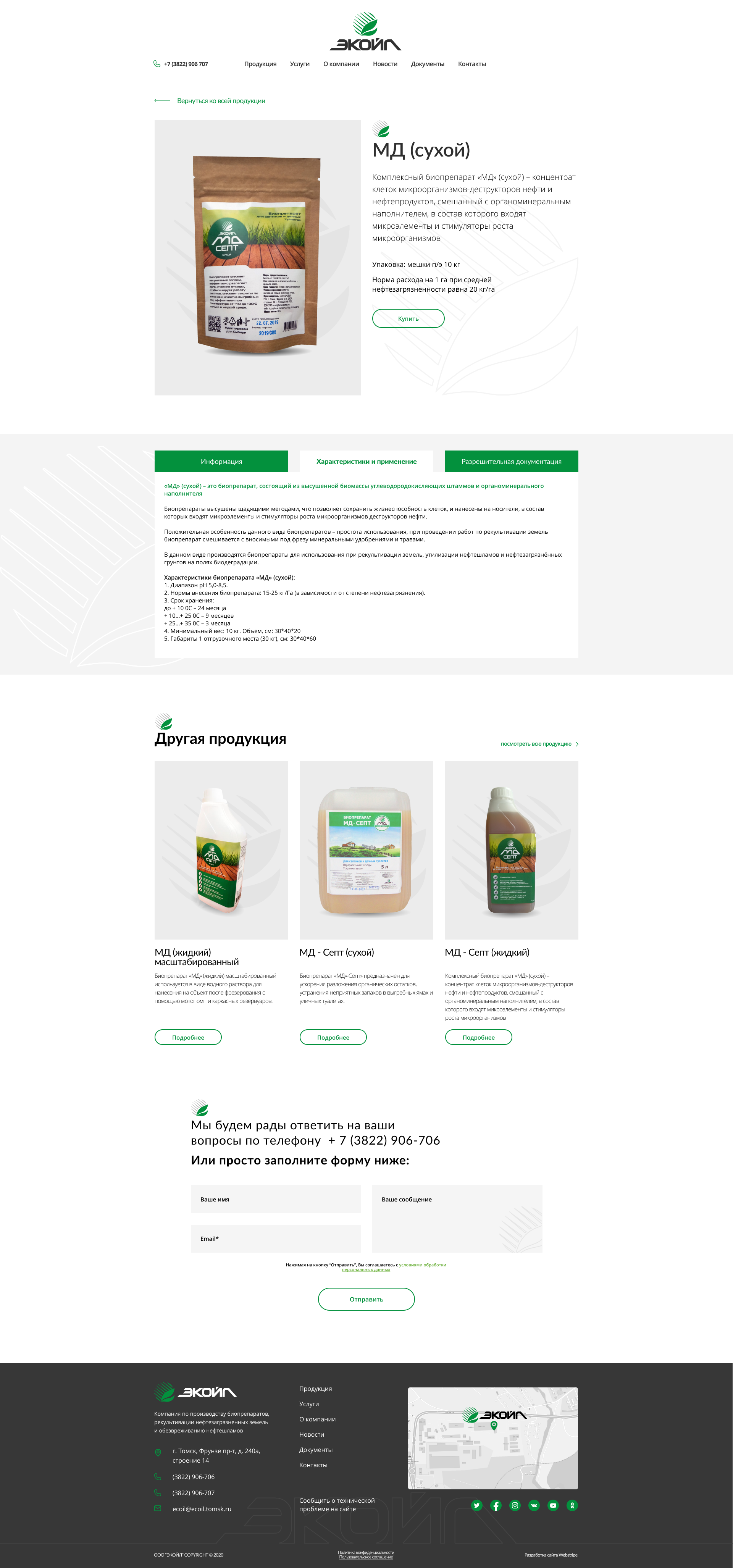 Создать профессиональный и содержательный онлайн-ресурс, отражающий специфику деятельности компании: производство биопрепаратов для очистки и рекультивации, технологическое сопровождение экологических проектов, предоставление полной документации и актуальных новостей.