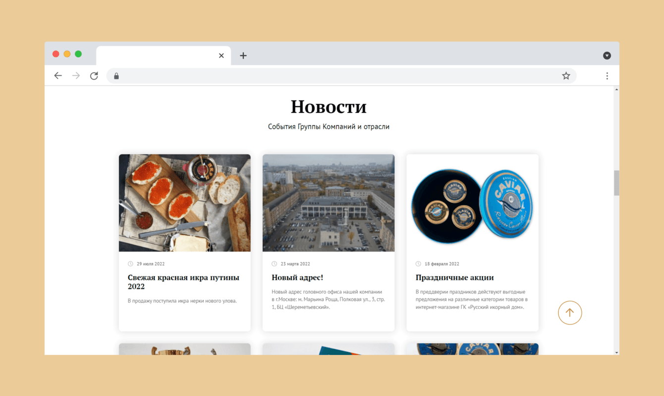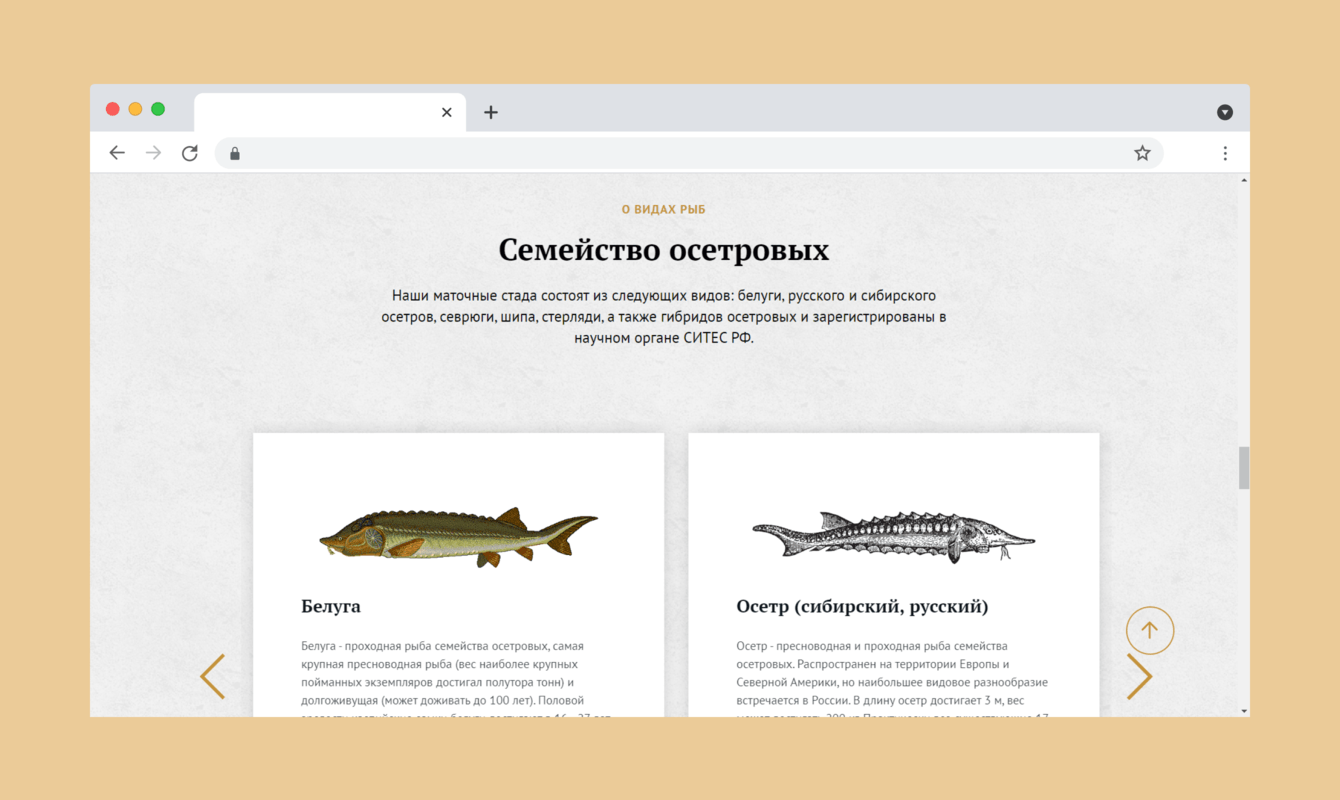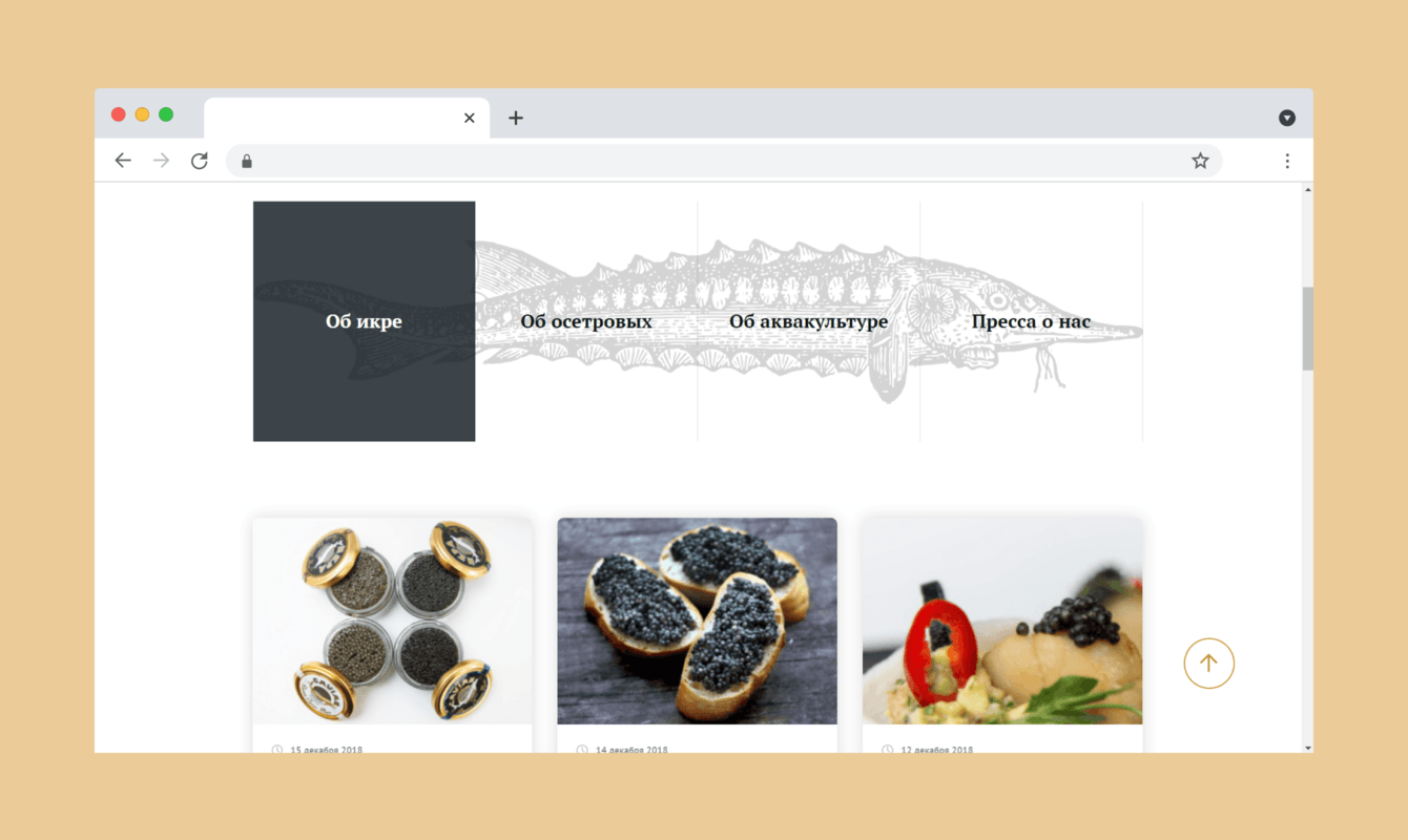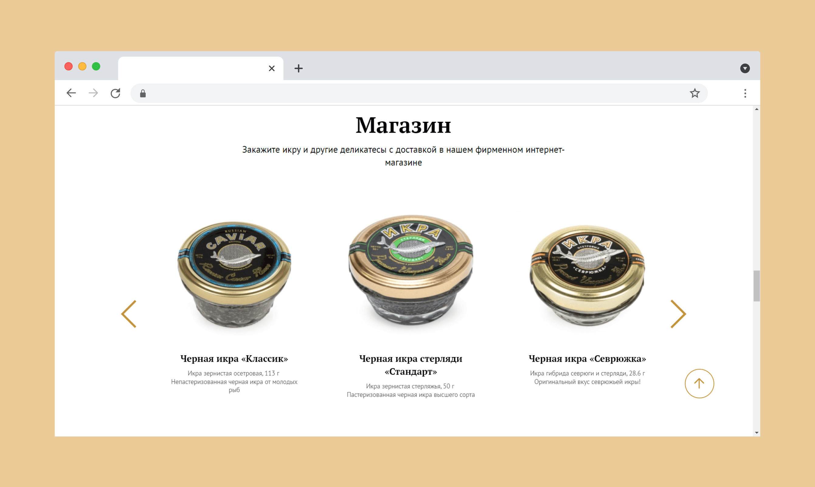 1. Перед нами стояла задача обновить устаревший имидж компании, интегрировать новый фирменный стиль, вывести сайт на новый уровень с целью привлечения новых клиентов и продвижения «Русского икорного дома» на зарубежные рынки, а также показать производственную мощность предприятия.