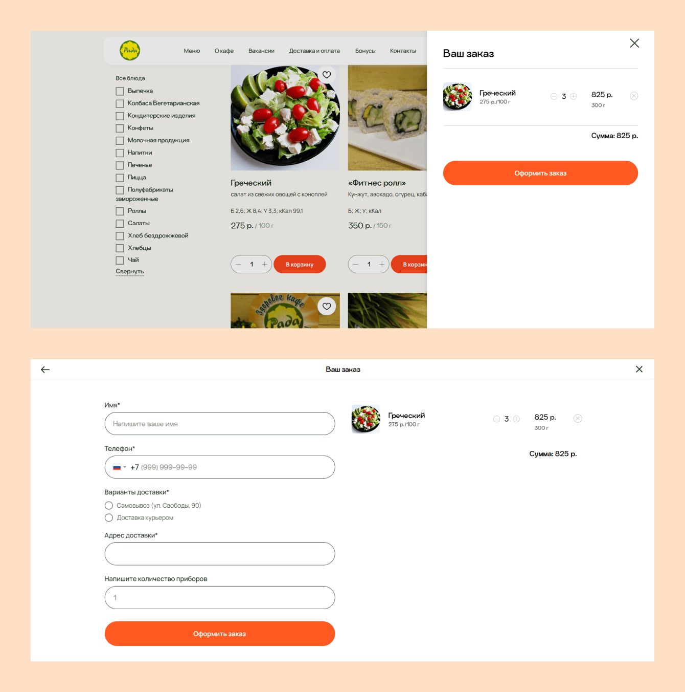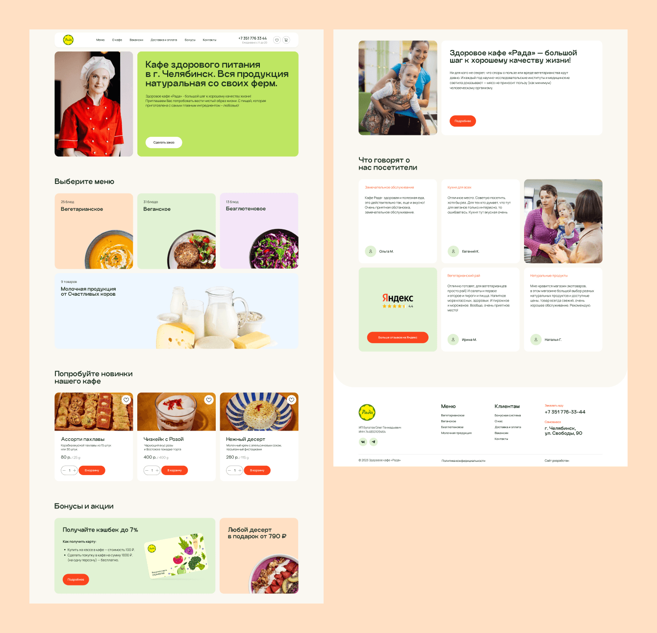 Провести редизайн сайта кафе здорового питания «Рада», сделав его современным, удобным и привлекательным. И в рамках ограниченного бюджета создать функциональный и эстетичный сайт, улучшающий пользовательский опыт и продажи.