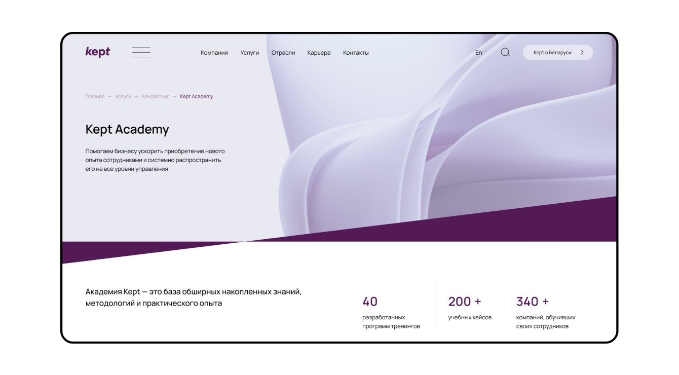 Цель: отразить актуальное позиционирование Kept для привлечения новых клиентов, инвесторов, соискателей и укрепления уже существующих связей.