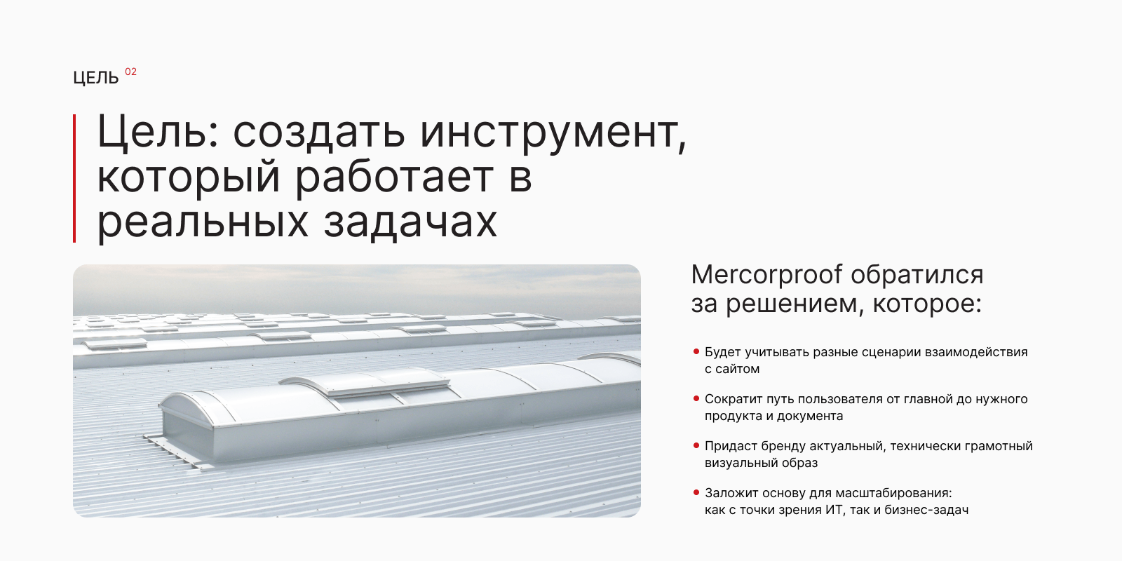 Сайт для Mercorproof — это не канал маркетинга, а цифровой рабочий инструмент. Он должен быстро давать ответы, помогать ориентироваться в линейке, предоставлять корректные технические документы.