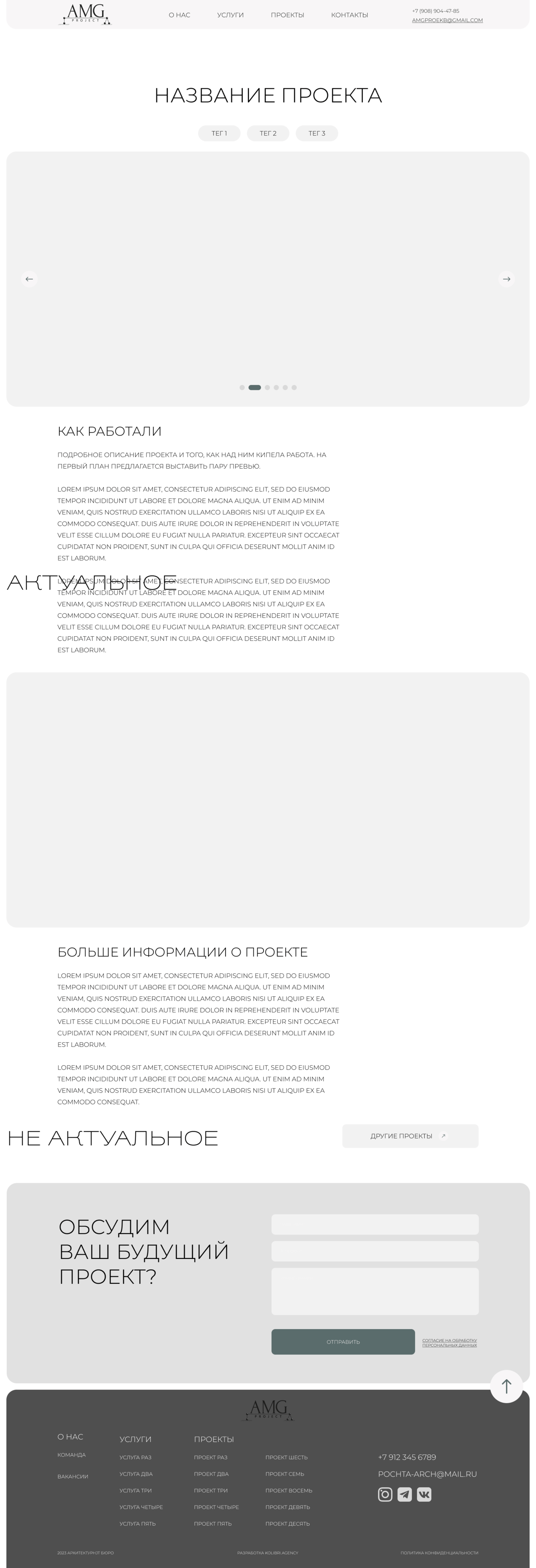 AMG — это молодая компания, которая за три года успешно реализовала множество проектов. Однако у них не было сайта, чтобы представить свои достижения. С таким запросом бюро обратилось к нам, чтобы продемонстрировать свои работы и укрепить имидж компании.