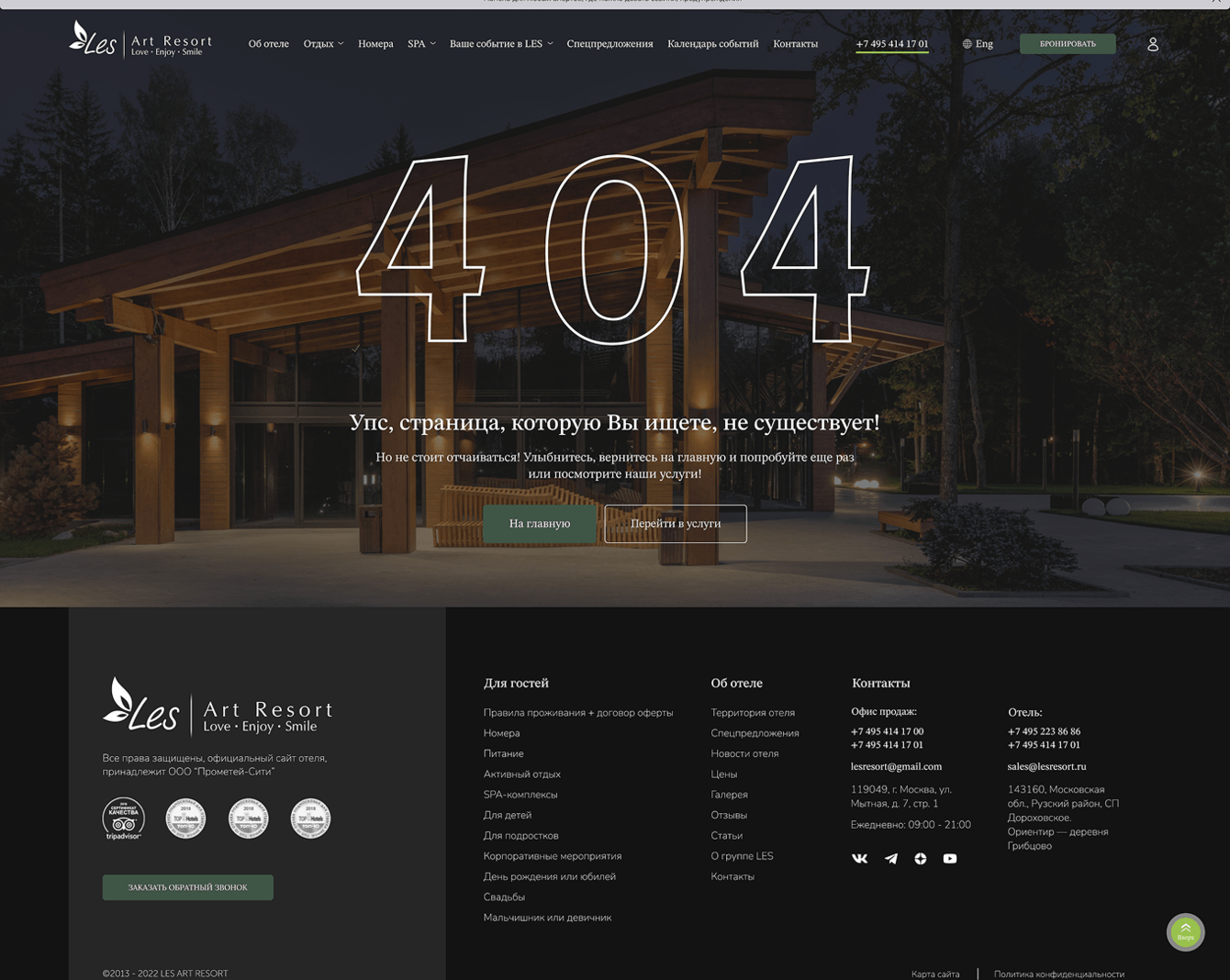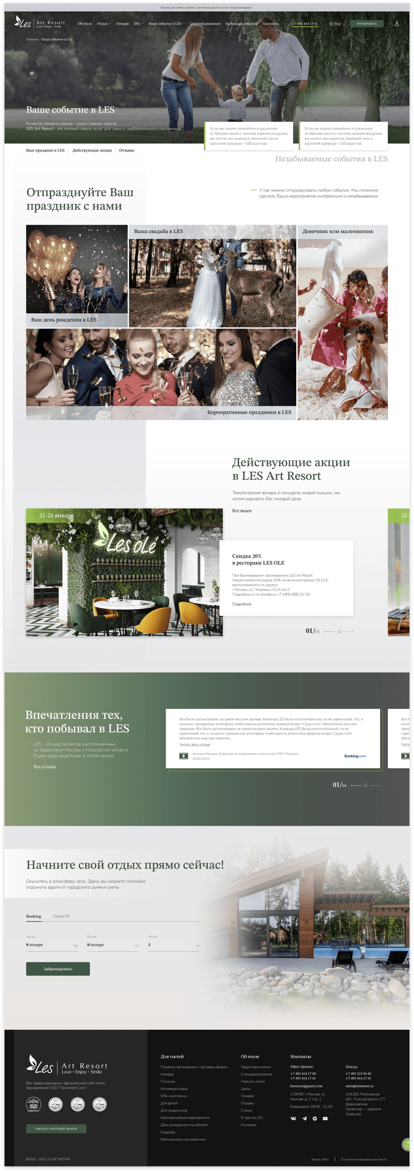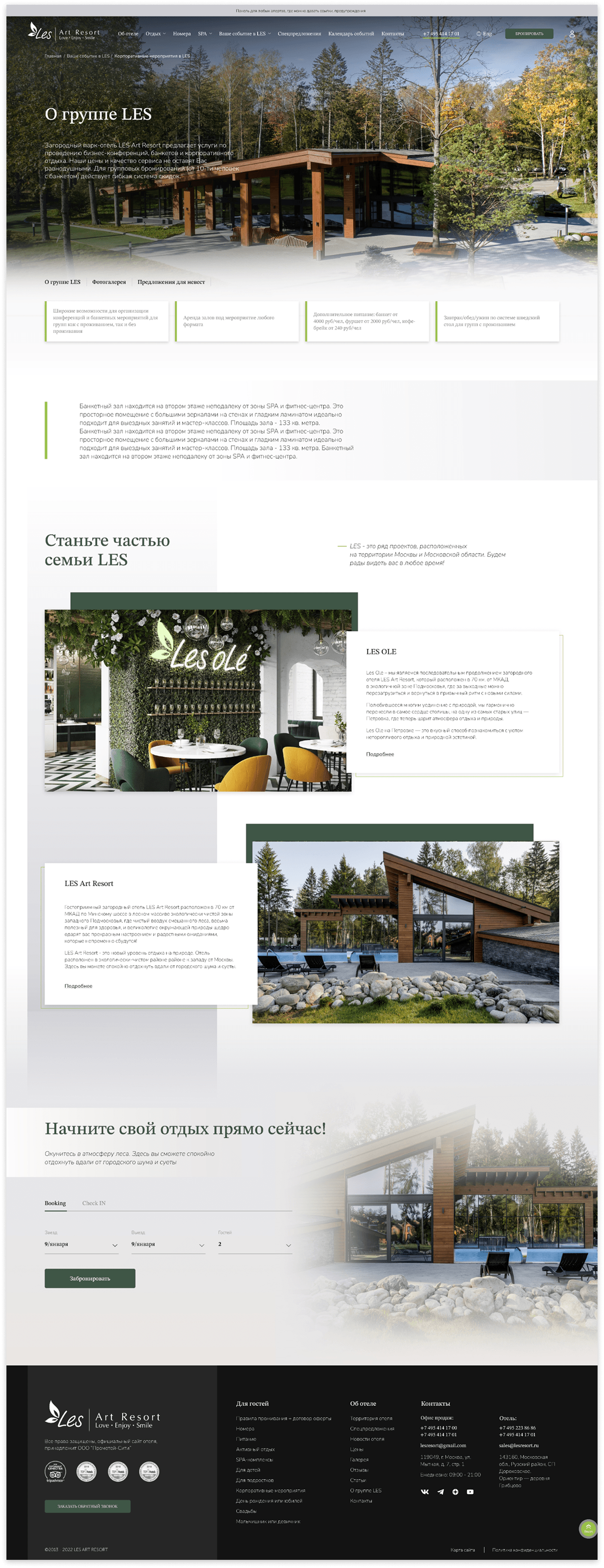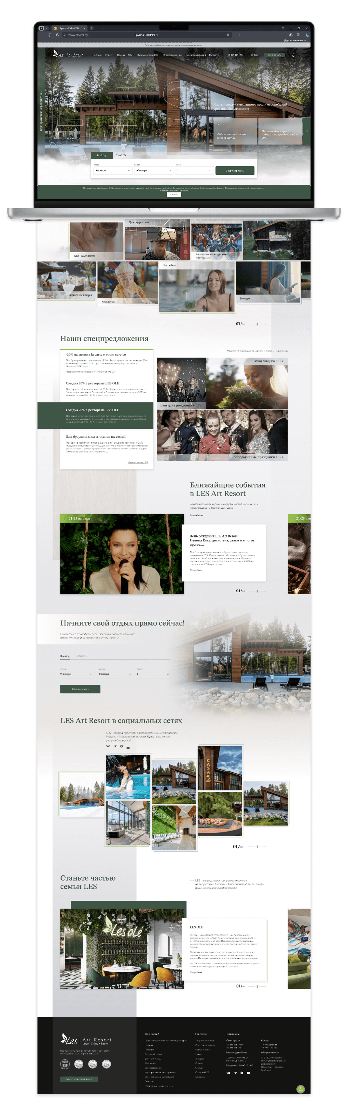 Мы начали сотрудничество с LES Art Resort в 2022 году. Команде отеля требовался редизайн действующего сайта, который перестал отвечать потребностям отдела продаж, не мог предоставить посетителям полного списка услуг, а также имел определенный набор программных ошибок.