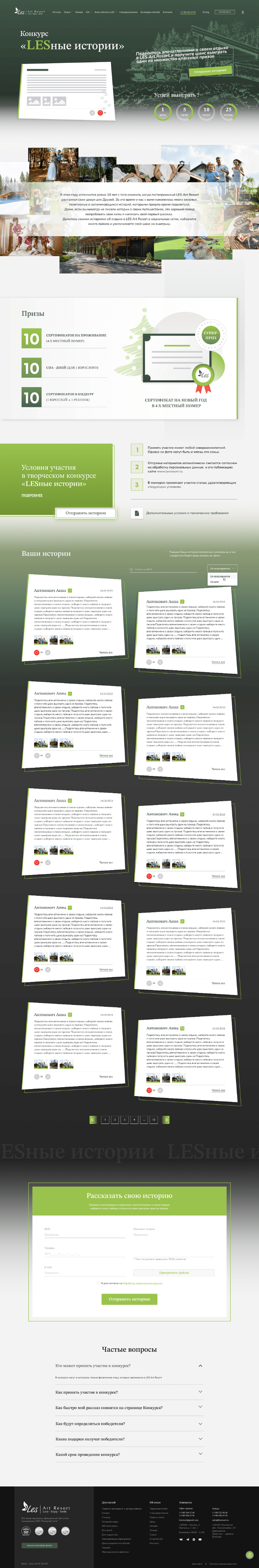 Уже после запуска сайта, LES обратился к нам за разработкой сайта рекламной игры LESные истории. От пользователей требовалось рассказать о своем лучшем отдыхе в LES, добавив фото или видео к своему рассказу, а самые залайканые истории получали призы.