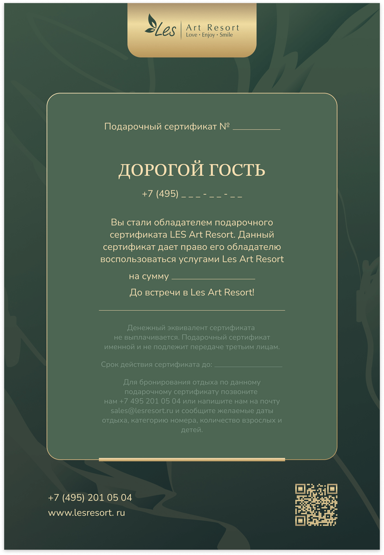 ООО «ЛесРесорт» — московская компания, которая владеет загородным отелем LES Art Resort и развивает направление HoReCa. Отель 4*, расположенный в живописном лесном массиве экологически чистой зоны западного Подмосковья вблизи поселка Дорохово на расстоянии 70-ти км от МКАД по Минскому шоссе.