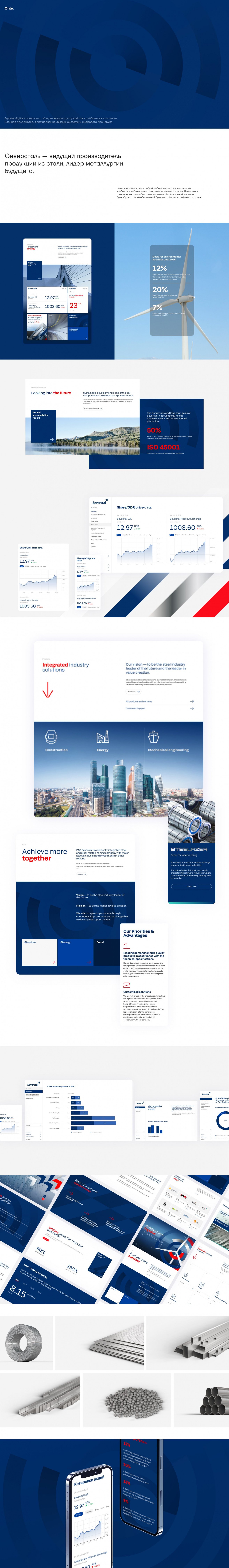Северсталь — ведущий производитель продукции из стали, лидер металлургии будущего. Компания провела масштабный ребрендинг, и нам требовалось разработать корпоративный сайт и единый диджитал брендбук на основе обновленной бренд платформы.