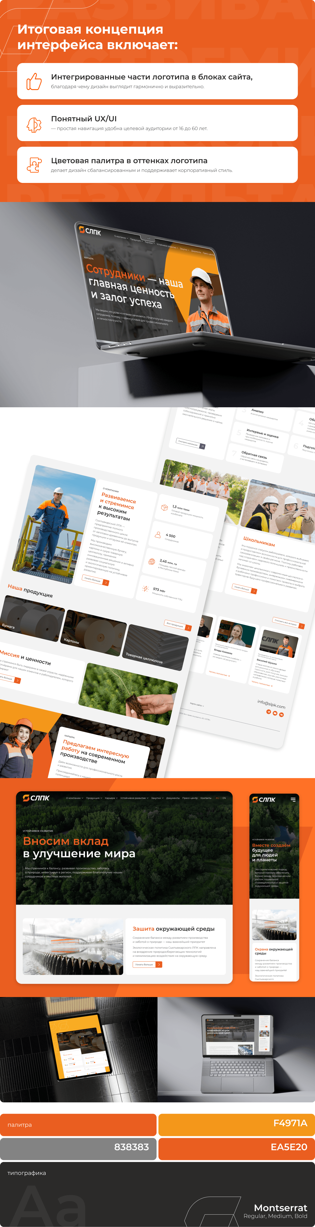 На брифе с заказчиком определили, что «СЛПК» необходим современный, сдержанный и минималистичный стиль, который поддержит ценности и философию компании.