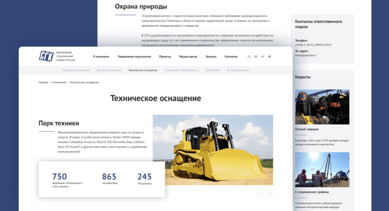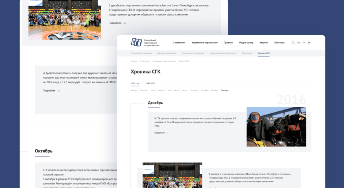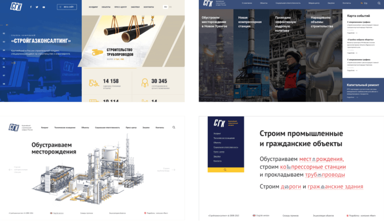 ООО «Стройгазконсалтинг» (СГК) – ведущая российская строительная компания, основана в 1996 году. Заказчику требовалось в крайне сжатые сроки (2 месяца на релиз, с нуля) обновить корпоративный сайт компании: создать визитную карточку обновленной компании, которая будет способствовать формированию устойчивого доверия со стороны целевой аудитории, обновить навигацию и актуализировать дизайн.