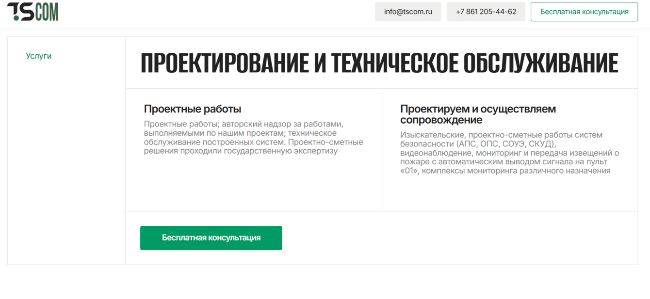 Клиент: ТСКОМ. Проектная компания системы безопасности