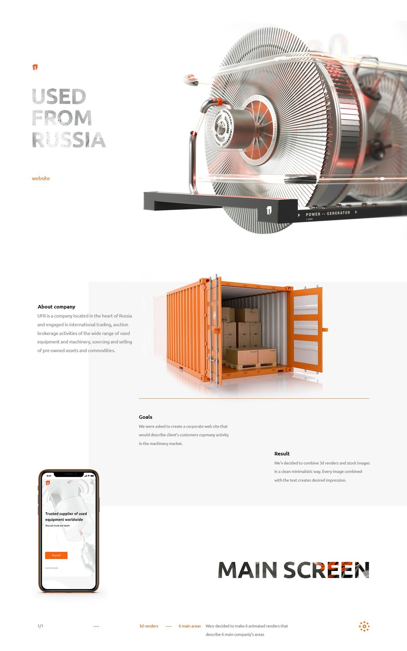 Разработать корпоративный сайт для Used From Russia. Компания занимается международной торговлей и брокерской деятельностью по продаже широкого спектра б/у оборудования и машин.
