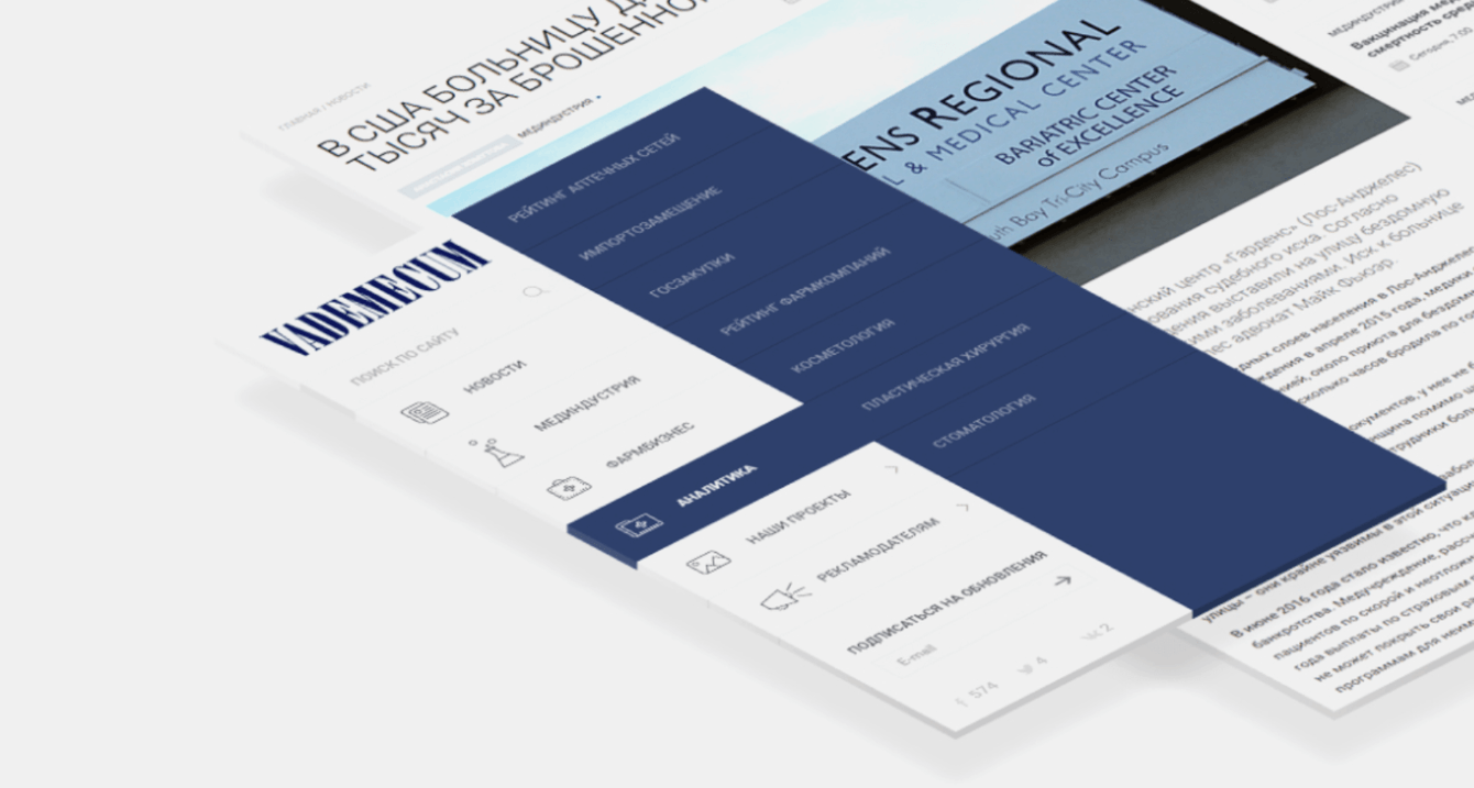 Мы учли специфику и вероятные сценарии работы с информационным ресурсом. Например, статистика показала, что более 20% посетителей сайта были «мобильными». Мы решили сделать максимальный упор на проектировании продукта, а в качестве основного метода выбрали Mobile First. Так как предполагалось размещать на сайте много разнообразного контента, то новый дизайн должен служить удобной оболочкой, которая не мешает воспринимать информацию. Основной функцией дизайна в этом случае стала расстановка акцентов и обеспечение удобной для восприятия «оболочки». Именно поэтому был выбран минималистичный стиль.