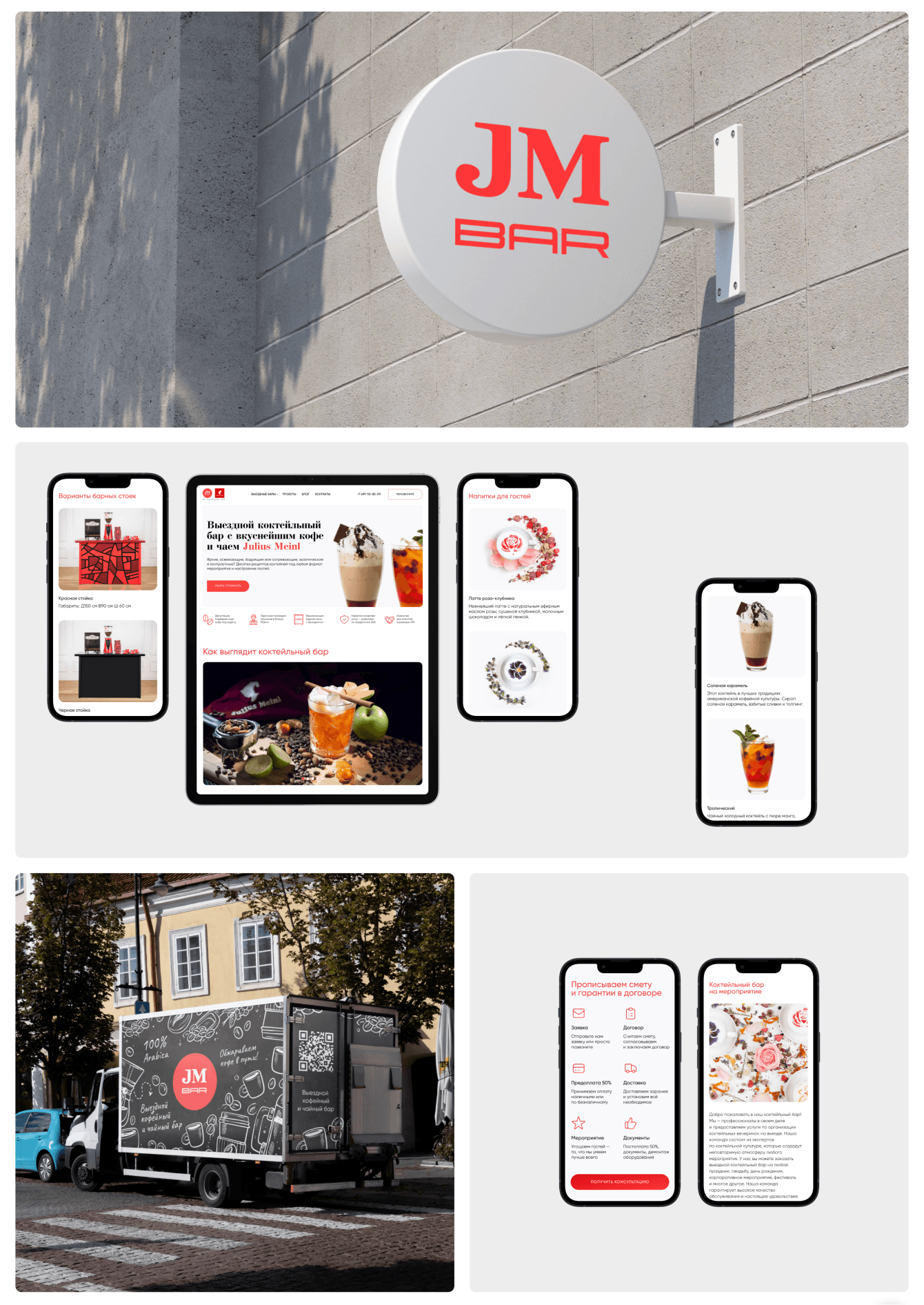 Работая над проектом для JM Bar, мы не только разработали сайт, который выигрышно выглядит на фоне конкурентов, но и получили настоящее удовольствие, погрузившись в мир выездного кейтеринга. Было невероятно интересно протестировать их коктейли во время дегустаций, чтобы как можно точнее передать атмосферу их услуг на сайте. В итоге мы даже организовали себе выездной бар на одно из наших мероприятий. Это был отличный опыт, который позволил полностью прочувствовать высокий уровень сервиса JM Bar и вдохновил нас на создание сайта, который отражает их премиальный подход.