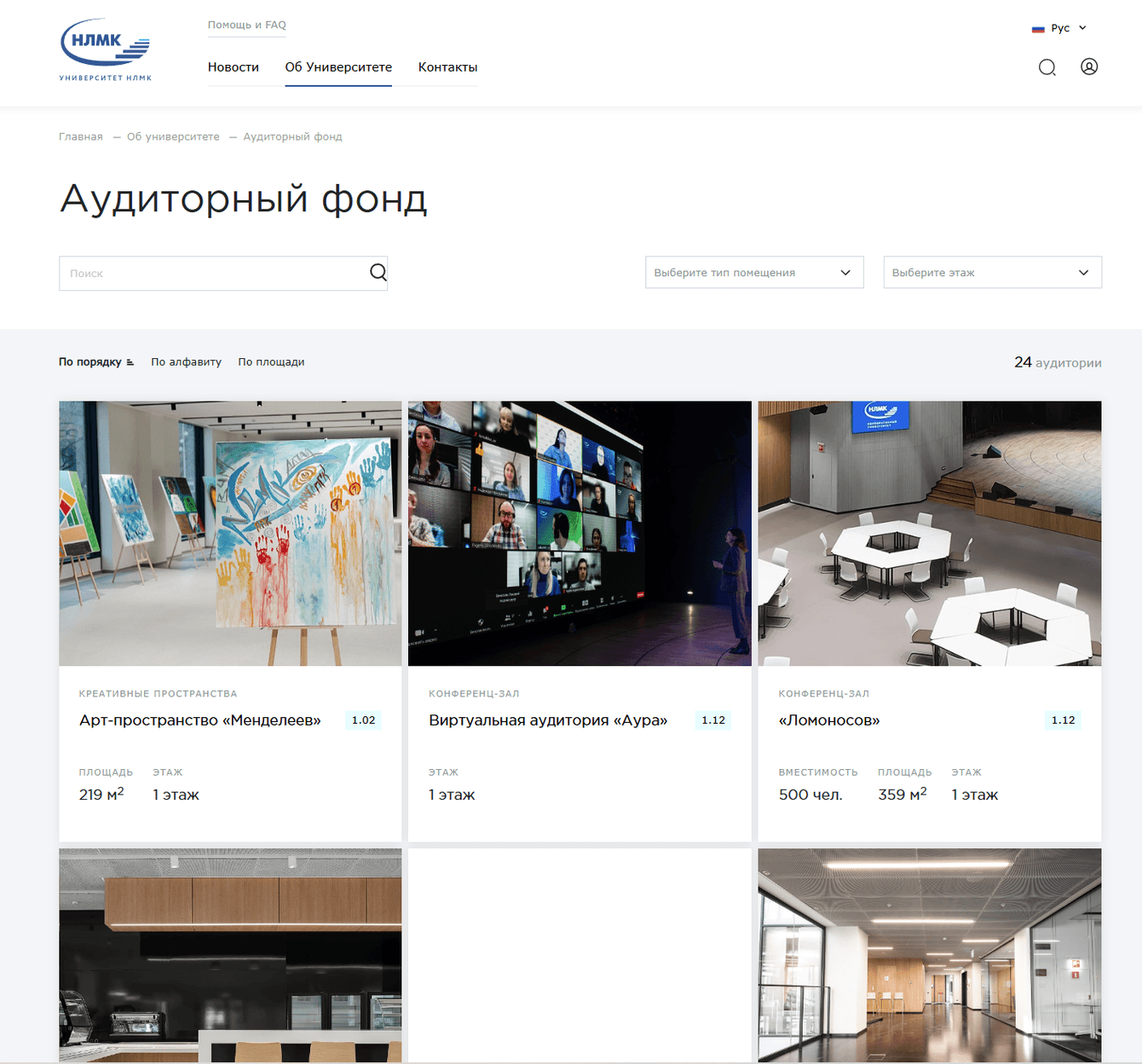 Портал содержит информацию о самом Университете, его образовательных программах, Кампусе и аудиторном фонде; реализован модуль бронирования аудиторий Кампуса.