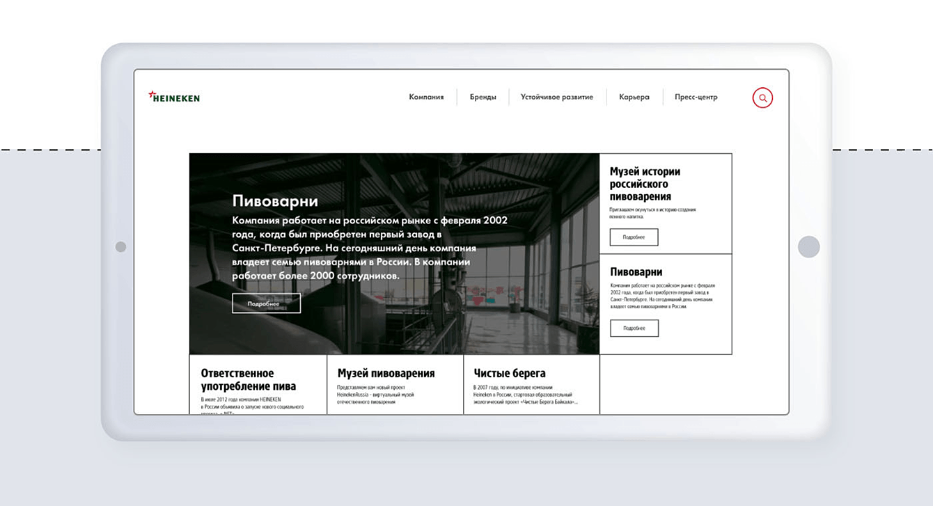 «У нас есть сайт HEINEKEN Russia, он морально устарел. Сделайте нам новый. Нужно быстро, но мы еще не знаем, какая информация будет на сайте. Хотим современный и динамичный. Важно, чтобы на сайте можно было разместить контент разного типа»