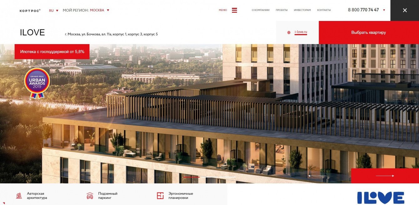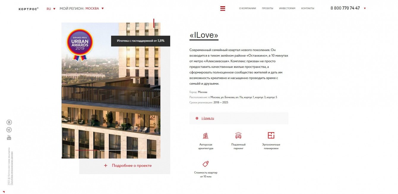 Значимая и самая наглядная часть корпоративного сайта – новые карточки объектов, которые сделали как мини-сайты со своим внутренним меню, в которых есть информация об объекте, локация, типовые планировочные решения, документы и контактная информация.