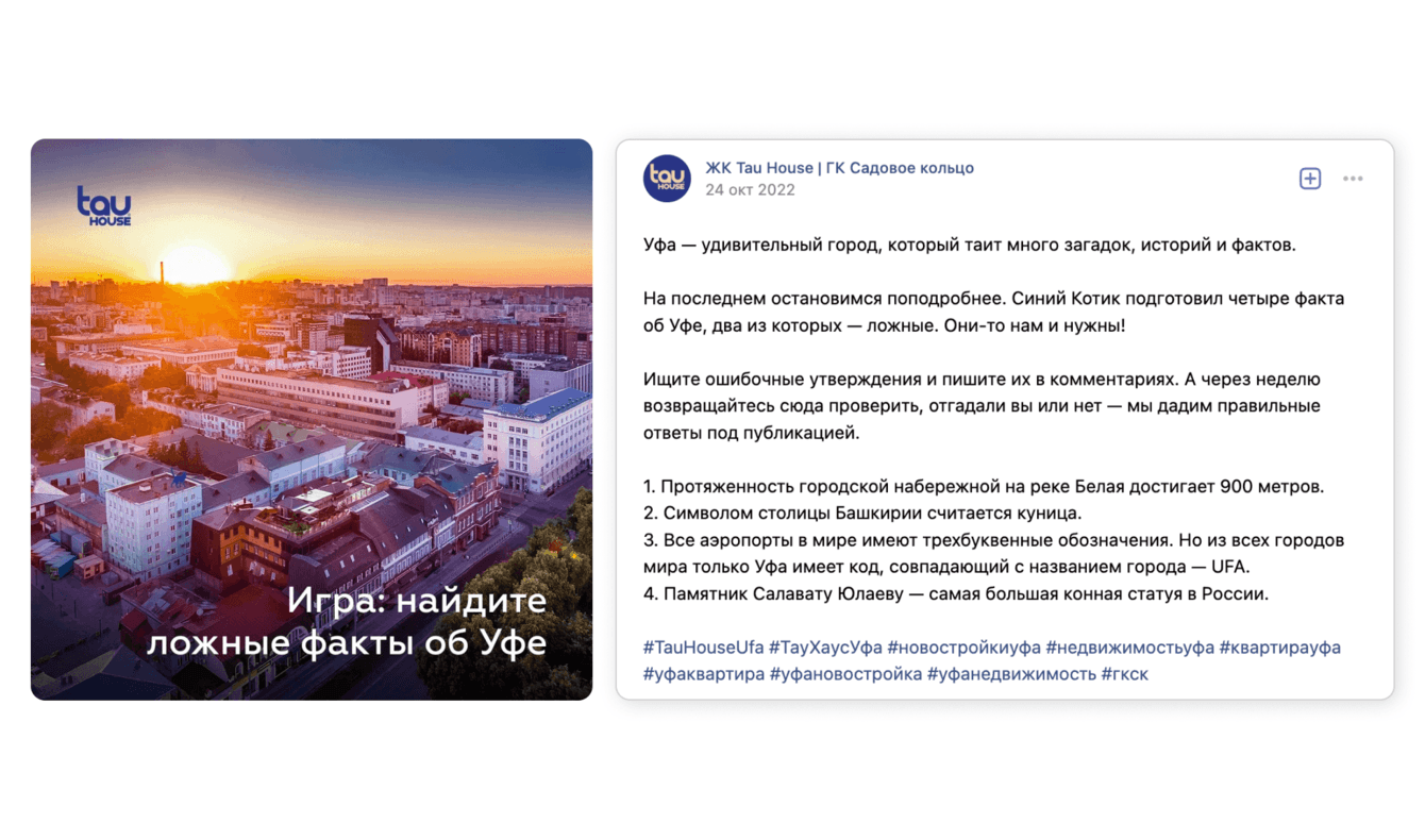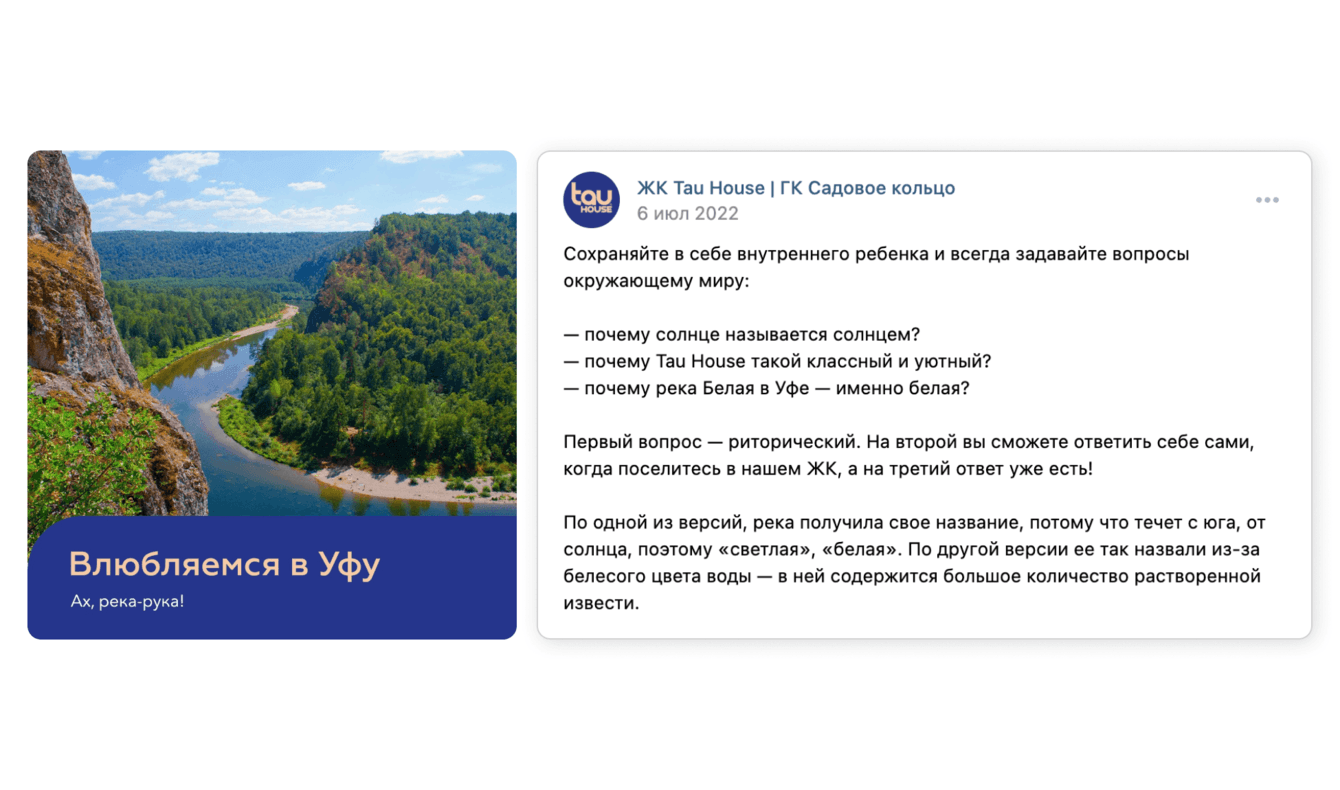 С помощью направления контента «Влюбляемся в Уфу» мы повышаем активность. А еще напоминаем о важности дома, семьи и любви к родному городу.