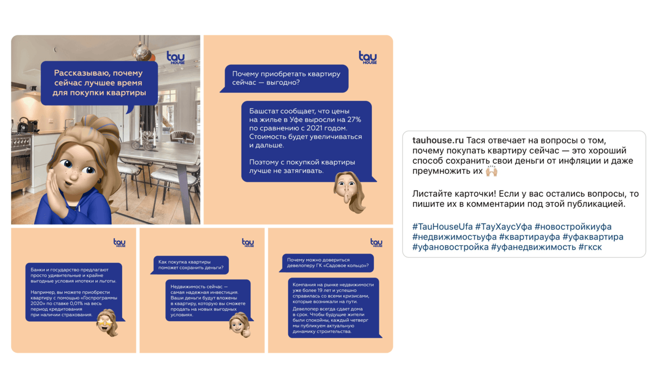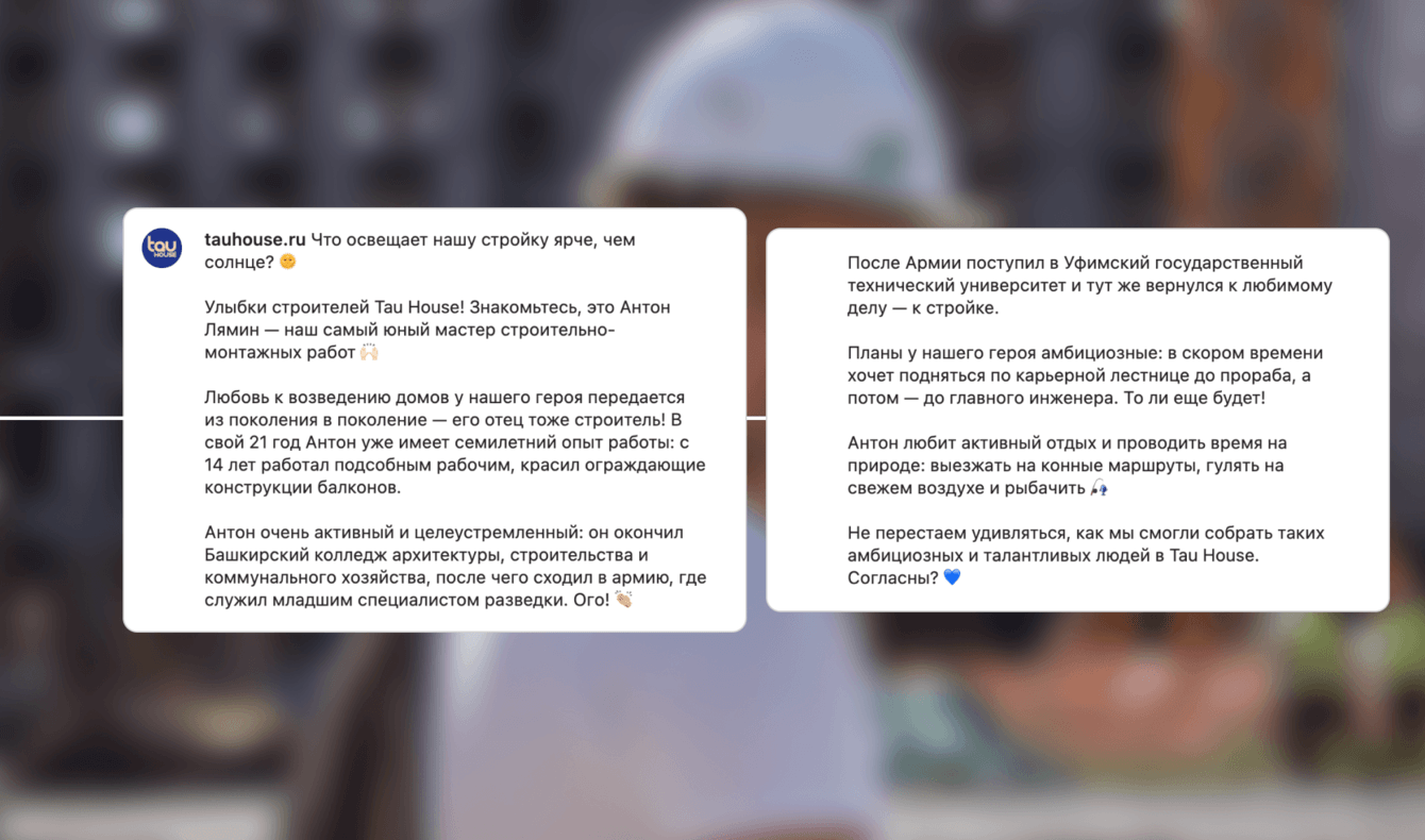 Чтобы донести до потенциальных покупателей, что бренд Tau House — открытый, честный и для людей, мы делали серию постов с интервью: