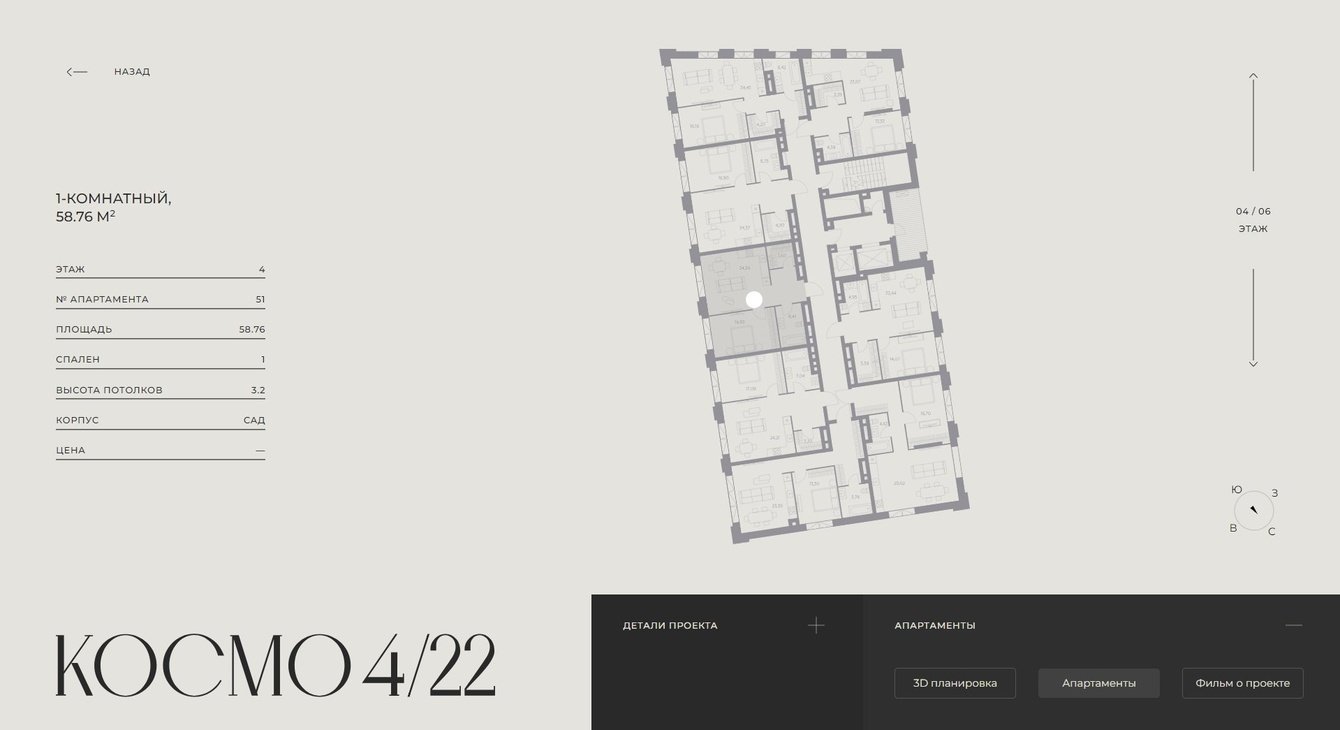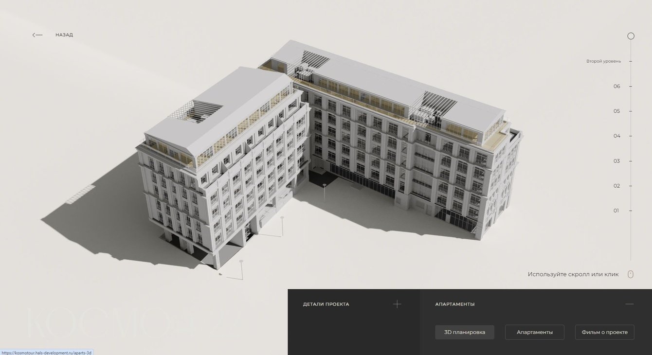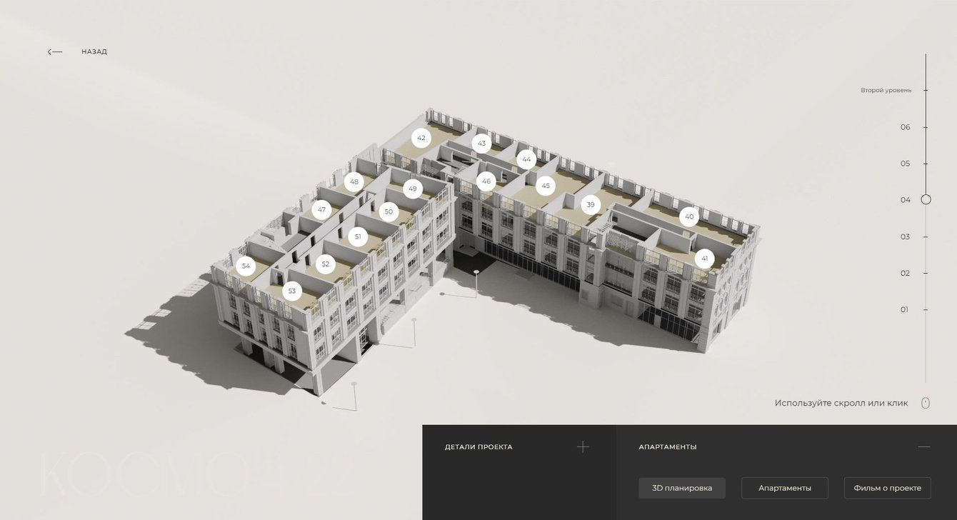 Разработать интерактивную презентацию для офиса продаж клубного дома “КОСМО 4/22” от ГАЛС-Девелопмент, а так же придумать идею и сценарий фильма,