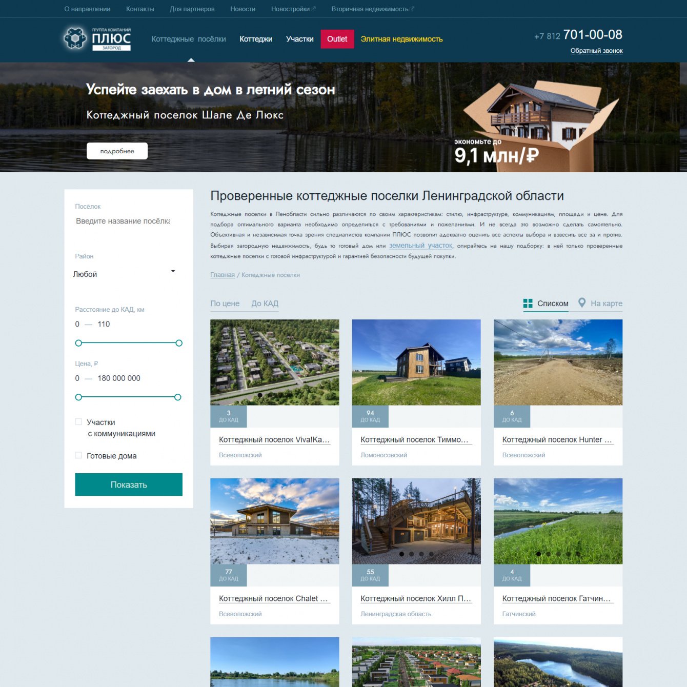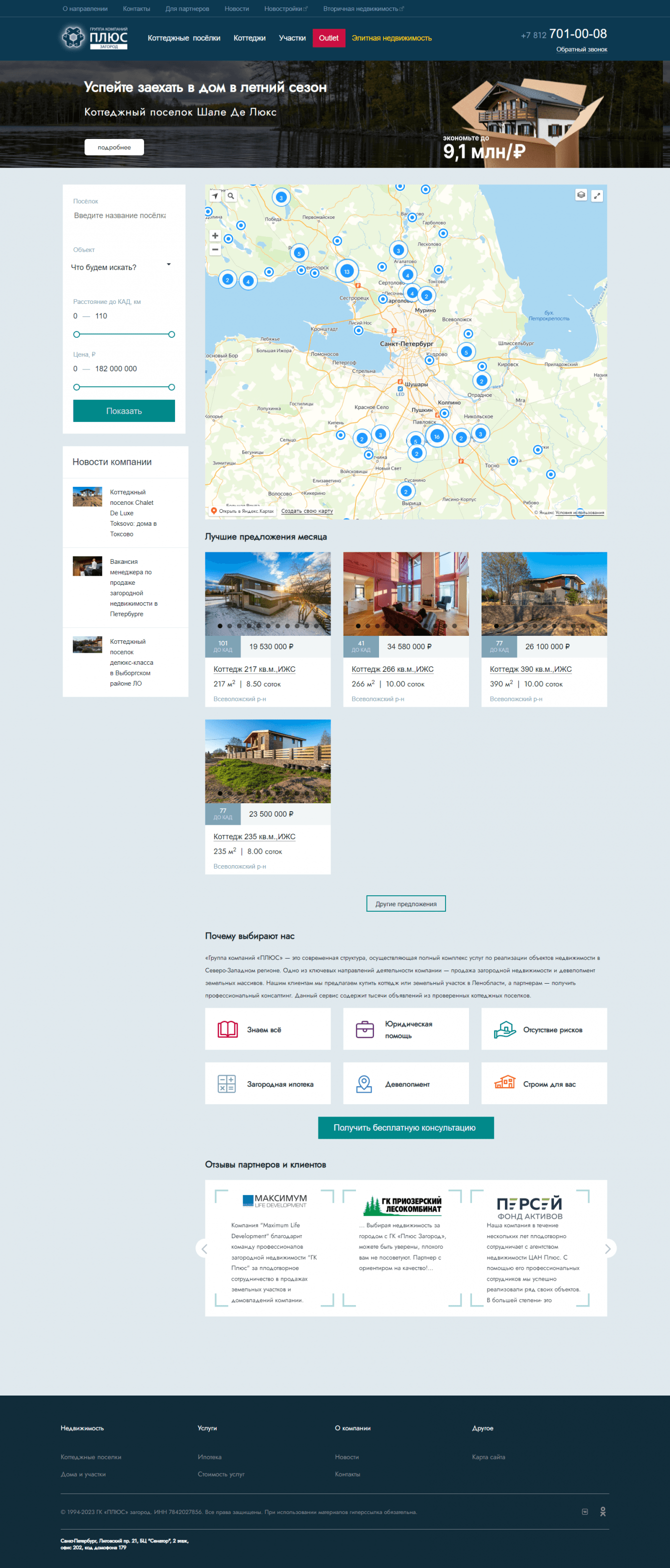 Доработка сайта лидера в области продажи загородной недвижимости СПБ и ЛО. 500+ вариантов загородных домов.