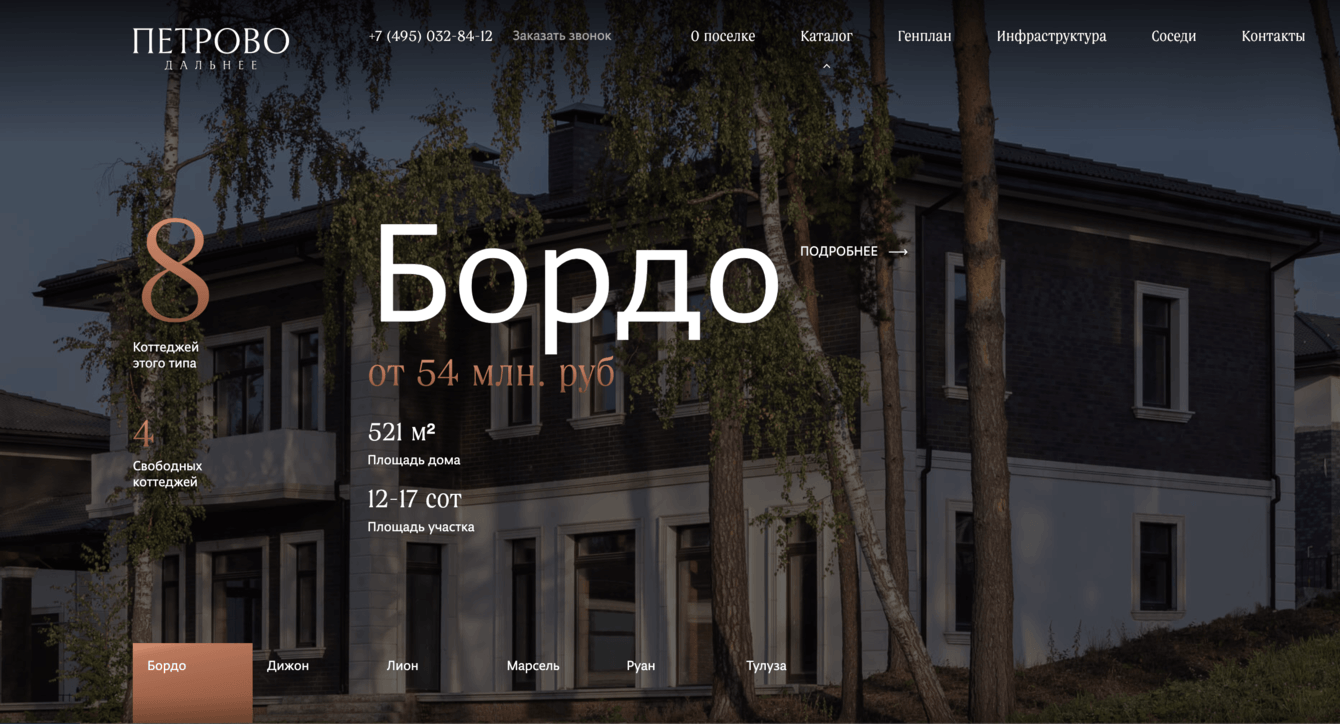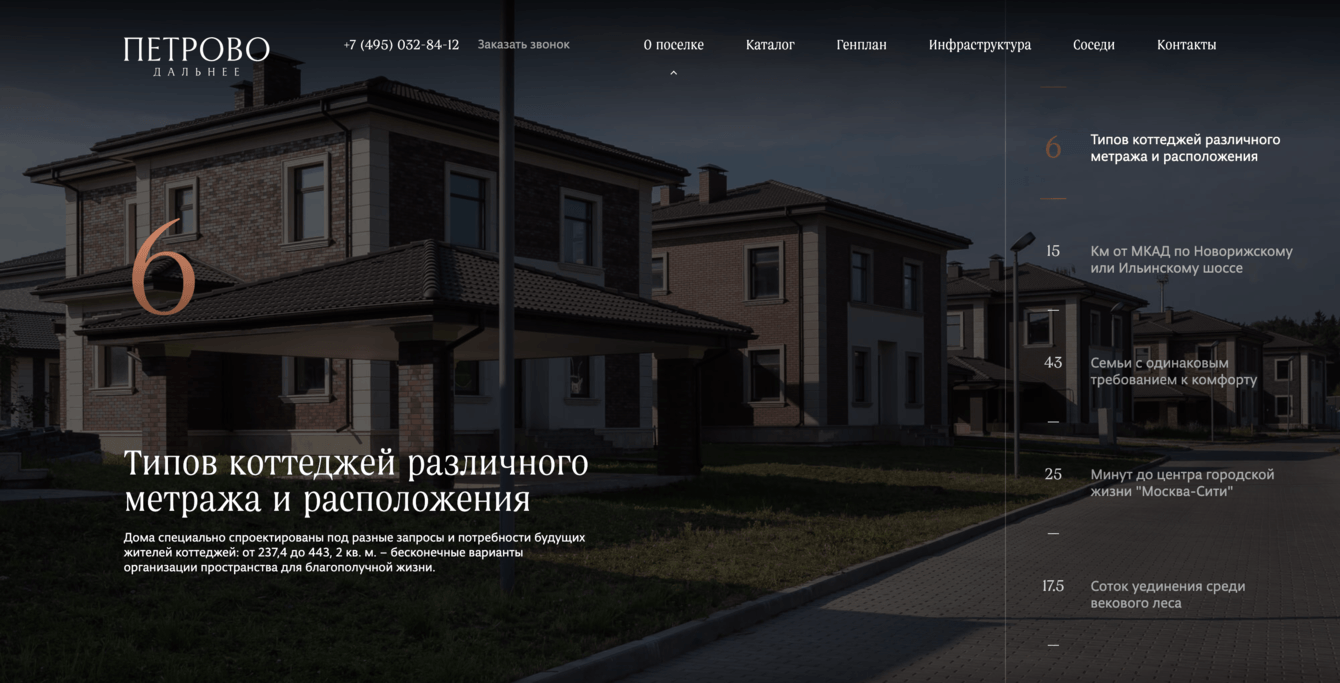 Была поставлена задача спроектировать и разработать продающий сайт для нового поселка премиум класса «Петрово-Дальнее»