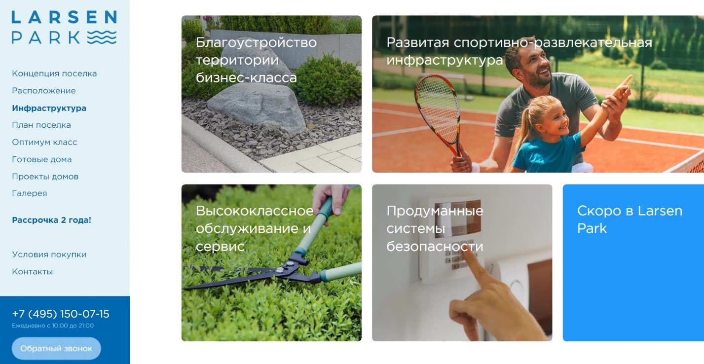 В КП Larsen park представлена премиальная загородная недвижимость (готовые дома с участками) по соответствующей этому ценовому сегменту стоимости, что не способствовало активным продажам. Поэтому заказчик поставил перед нами задачу: